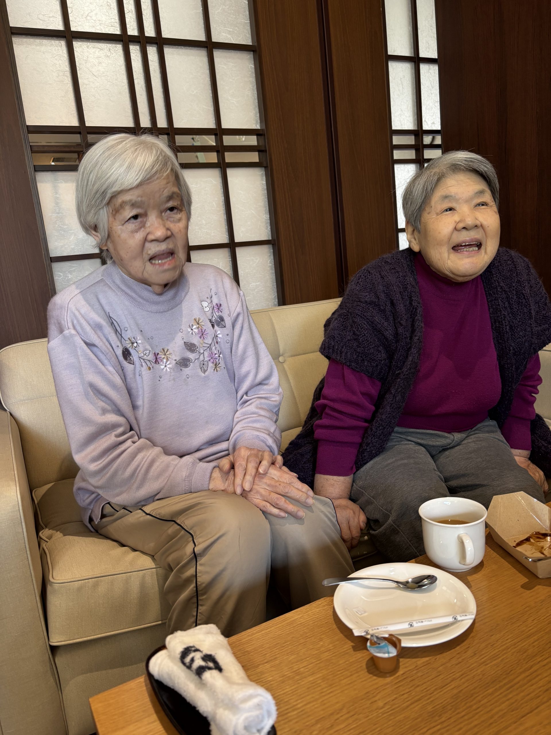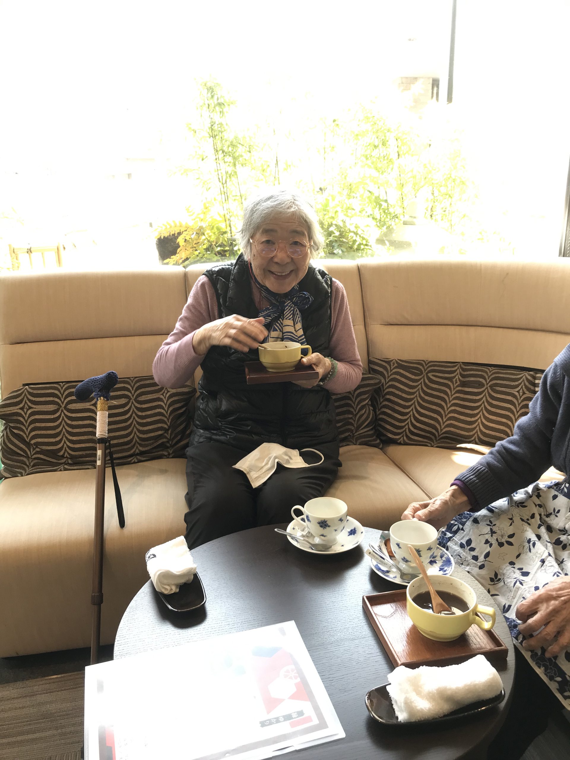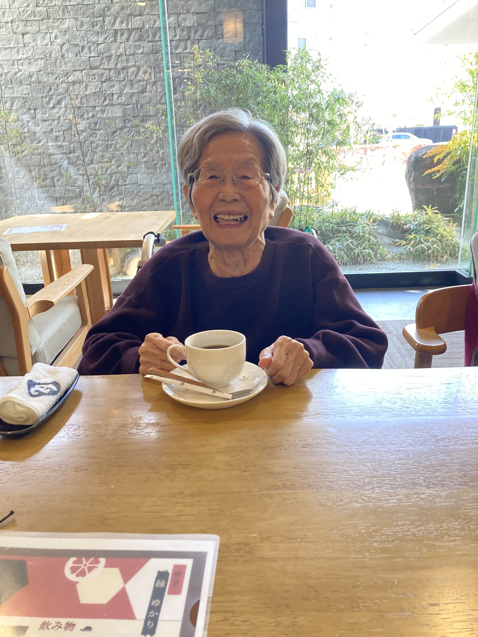 テーブルを囲みながらご利用者様同士で会話が弾み「私コーヒー大好きやから嬉しいわ~🥰」「これすごくおいしいね~😳」「気分が変わって楽しいね~😊」と笑顔もたくさん見られました。