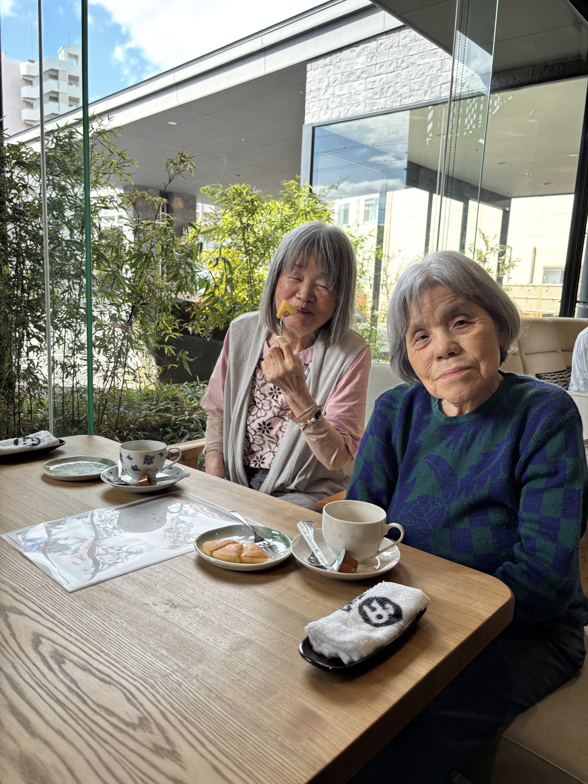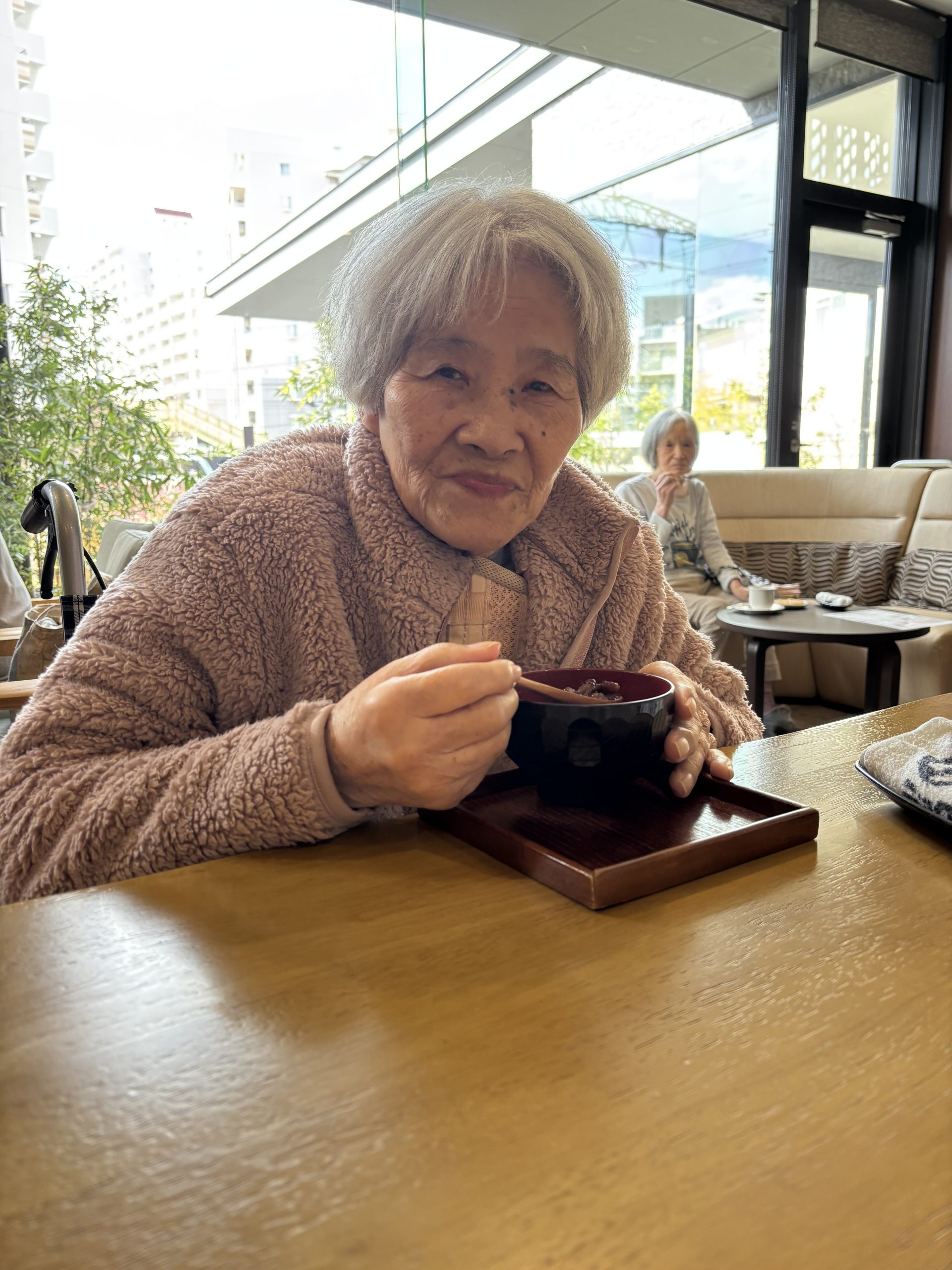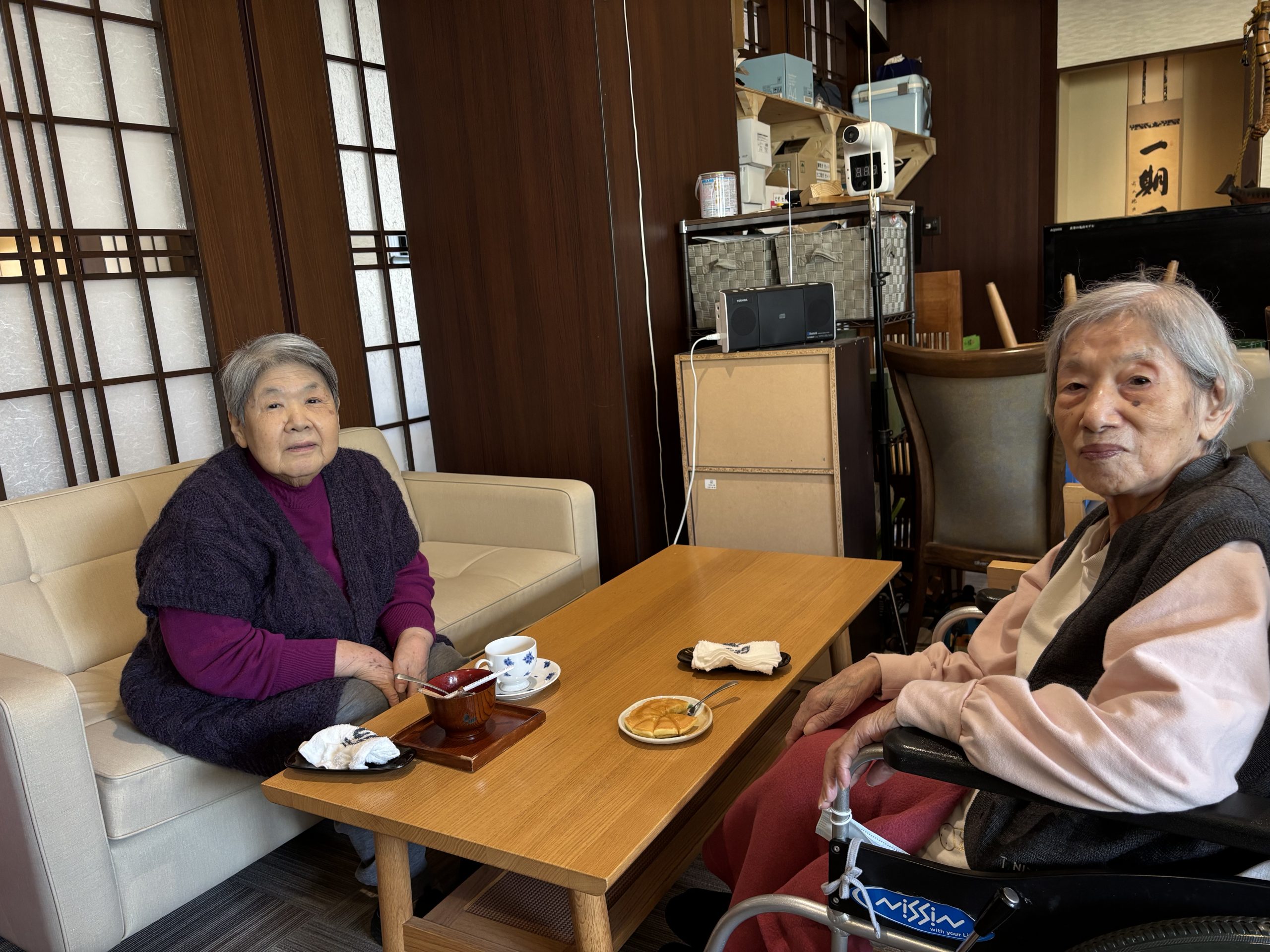 テーブルを囲みながらご利用者様同士で会話が弾み「私コーヒー大好きやから嬉しいわ~🥰」「これすごくおいしいね~😳」「気分が変わって楽しいね~😊」と笑顔もたくさん見られました。