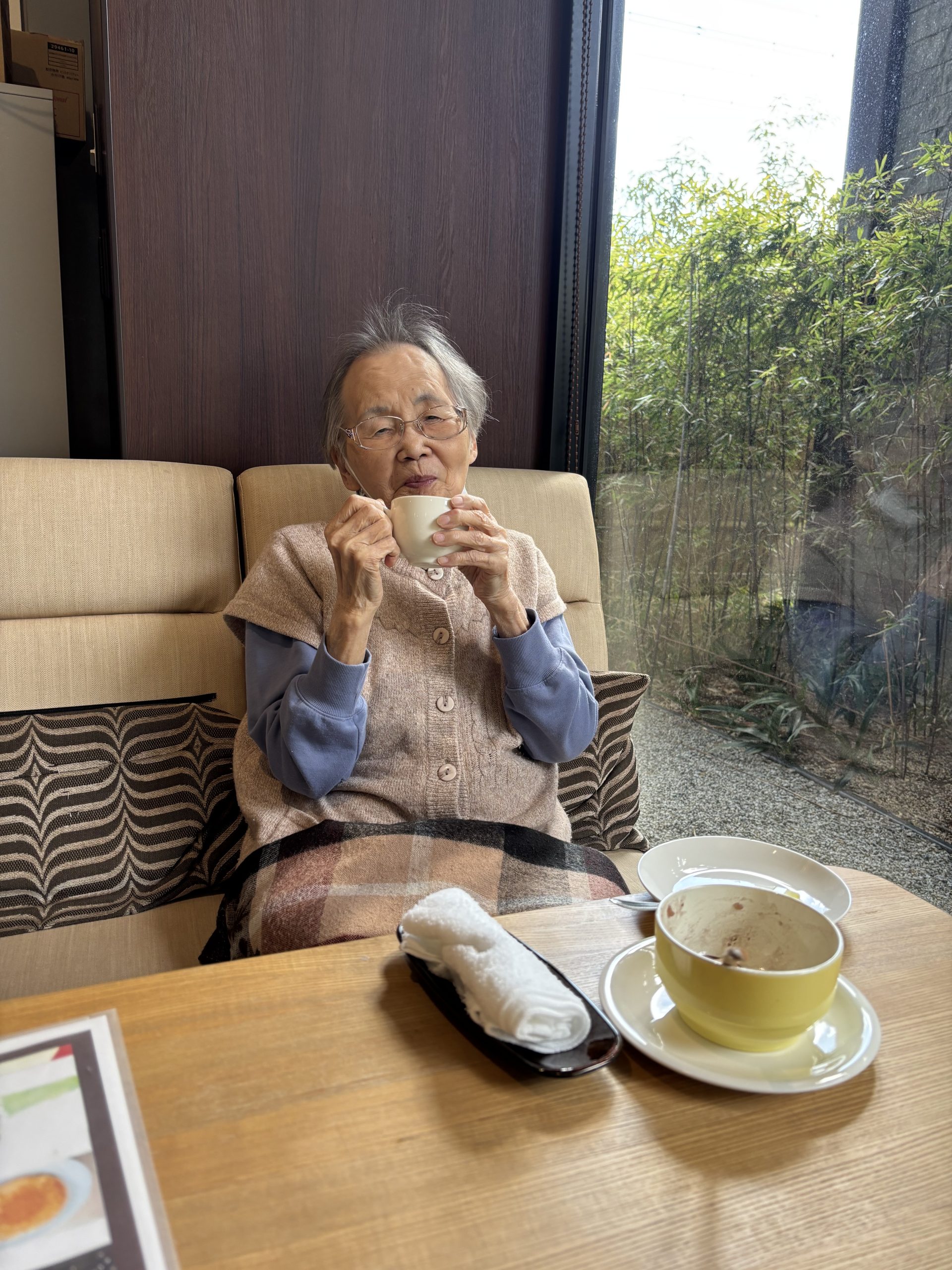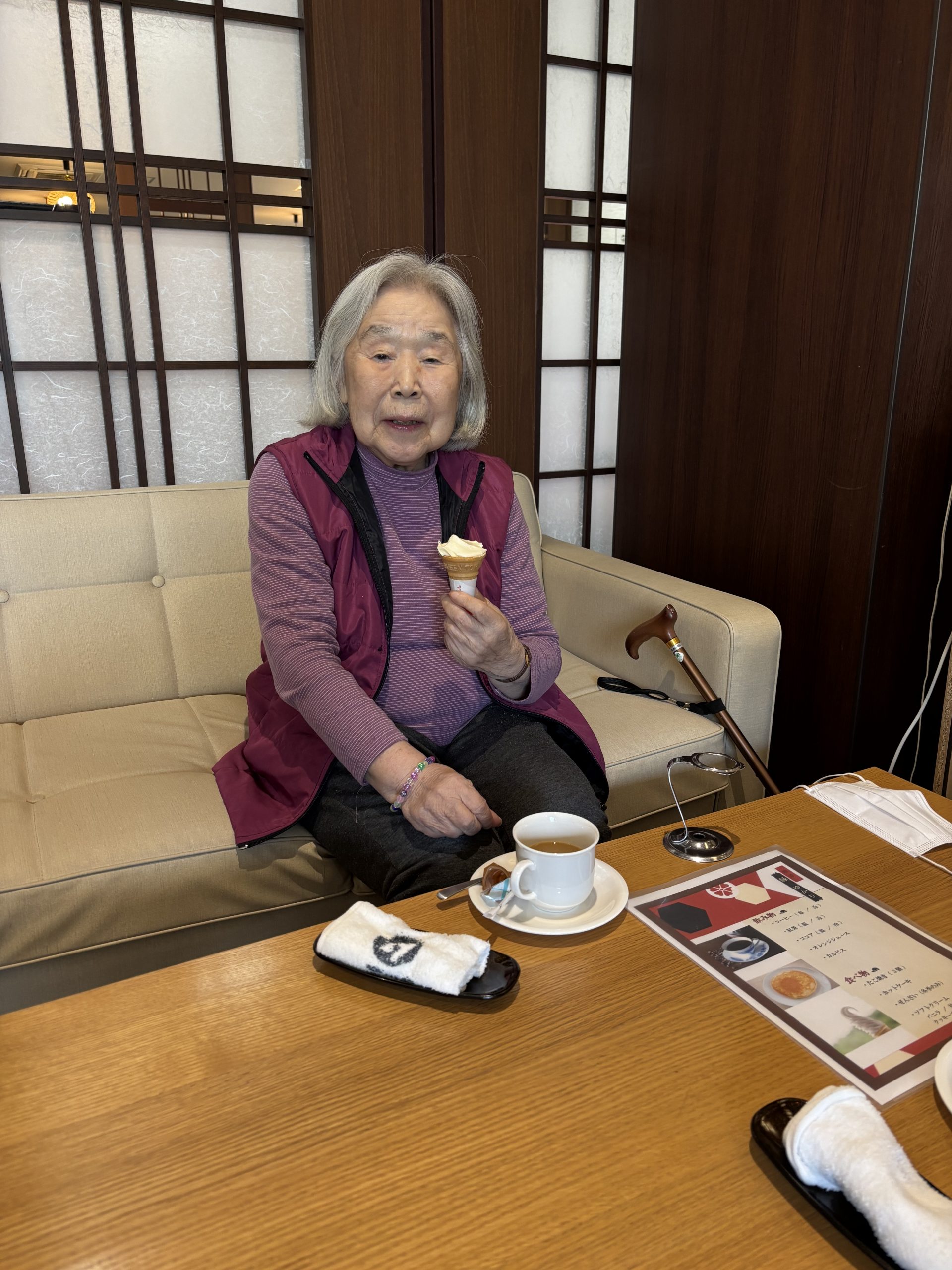 コーヒーや紅茶の香りに包まれながら、パンケーキ、たこやき、ぜんざい、ソフトクリームなどお好きな飲み物や食べ物を頼まれゆったりとした時間を過ごされていました😄🎶