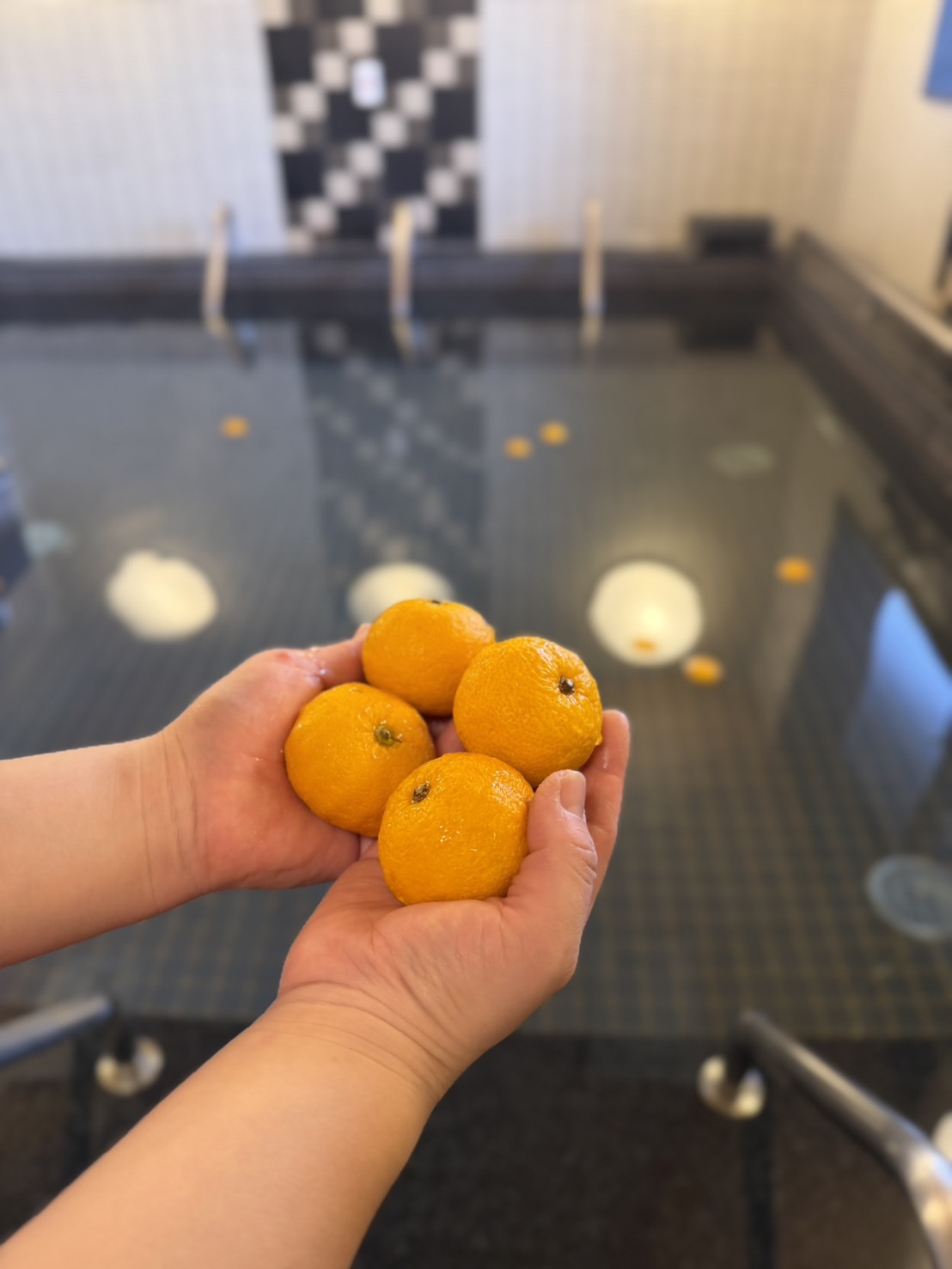 「🍊ゆず湯♨️」は一年で最も昼が短い🌇日に、香り高いゆず🍊で身を清めることで、「邪気を払う」「健康を願う」とされています。