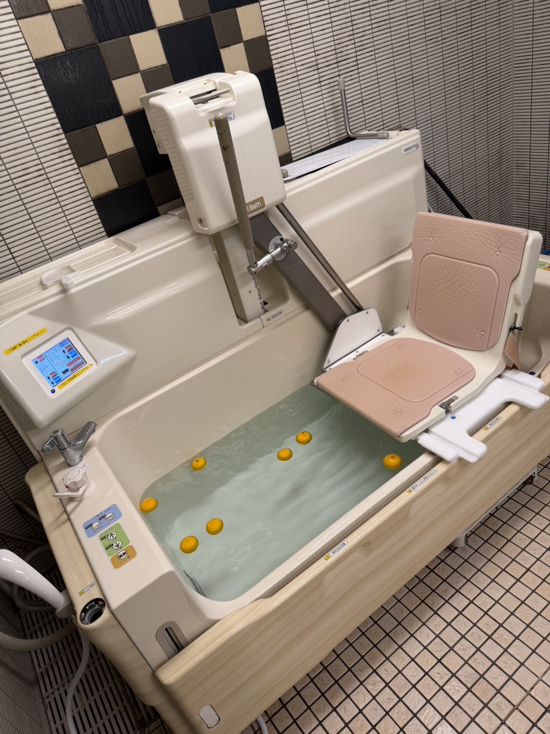 入浴中🛀、利用者の皆様はゆず🍊を手に取り、軽くつぶして香りを楽しんでおられました。