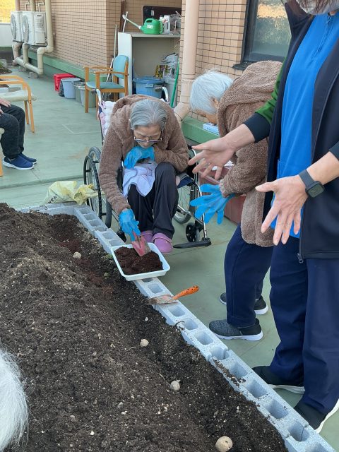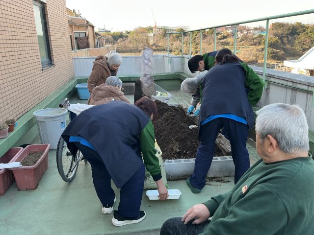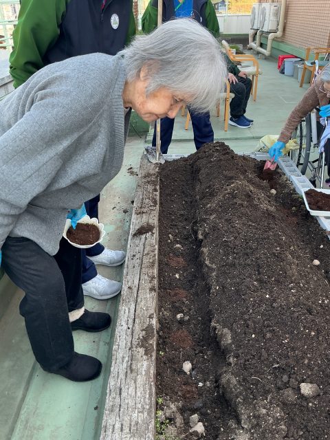 車椅子の方も、足腰の丈夫な方も、みんなでプランターを囲んでの共同作業です🤝