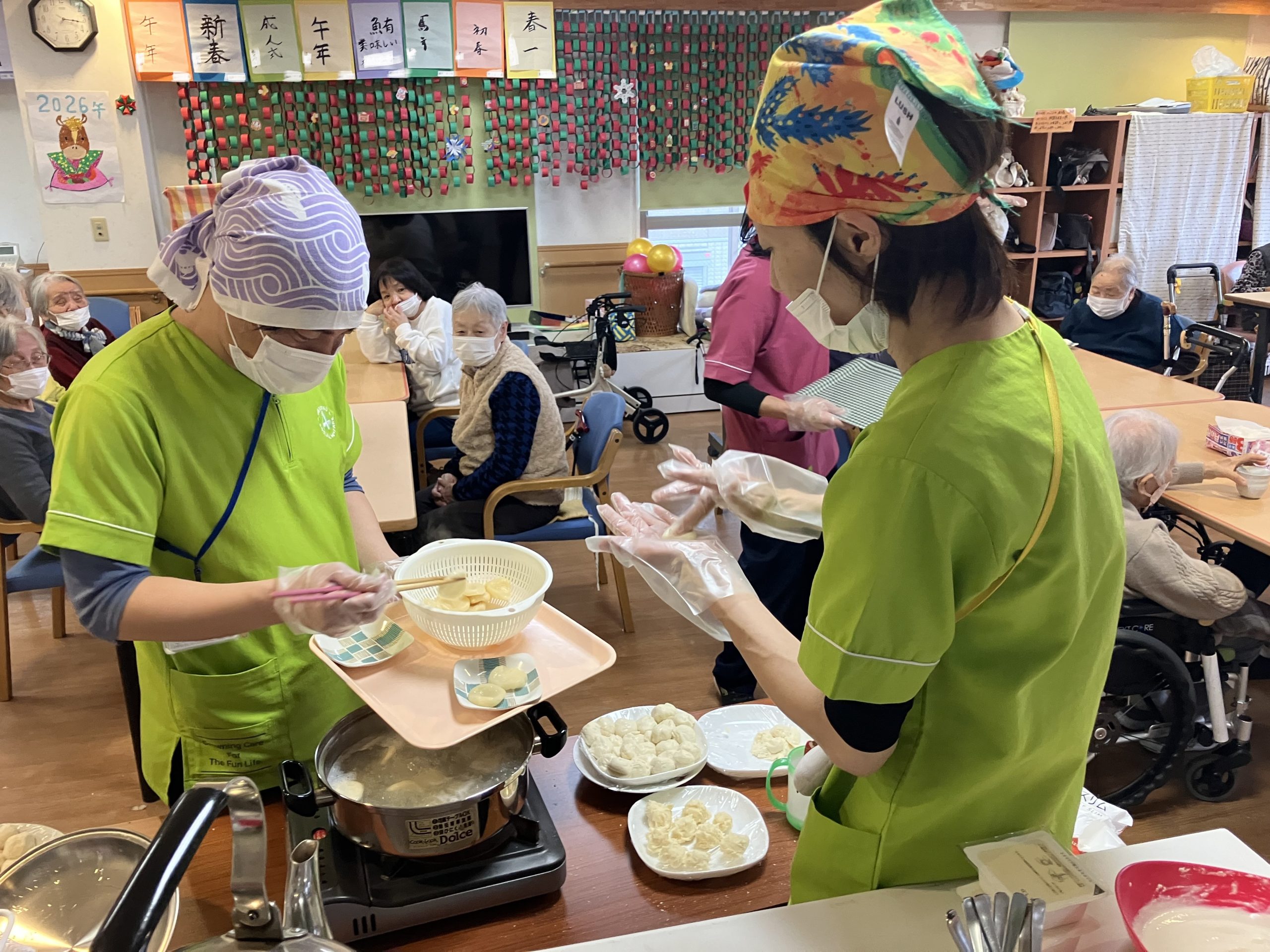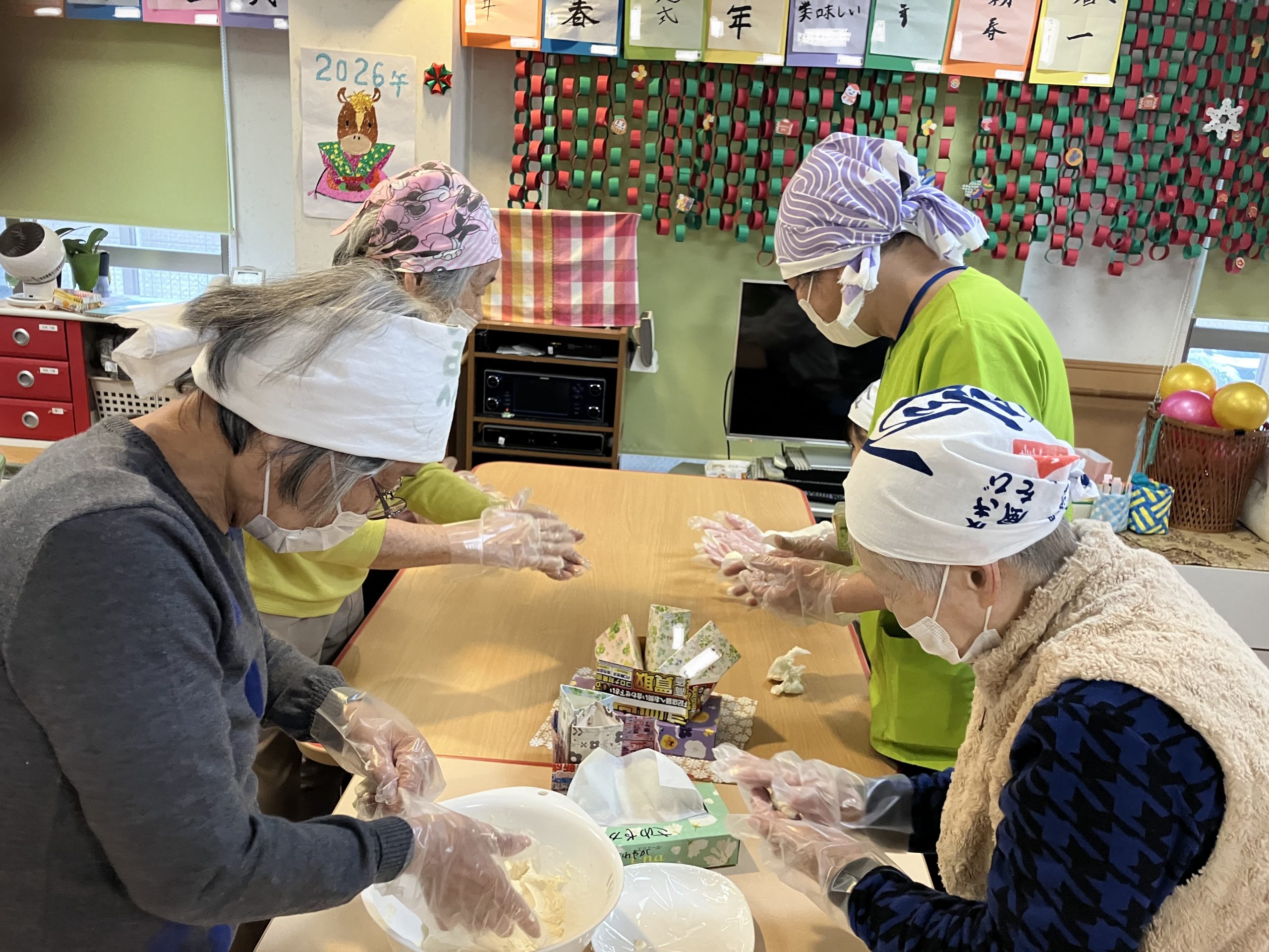 少し弾力のある団子になりましたが、おかわりをされる方もおられ美味しく頂きました(#^.^#)