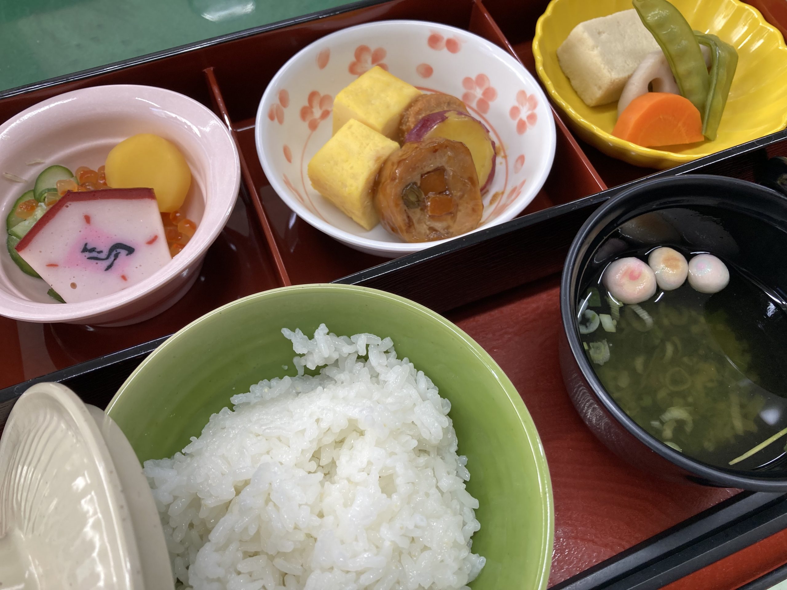 鶏肉の八幡巻き、だし巻き玉子、紅あずま甘露煮