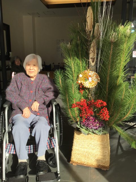 菜乃花では毎年玄関に門松を飾っており、そこで写真撮影を行いましたのでご紹介いたします