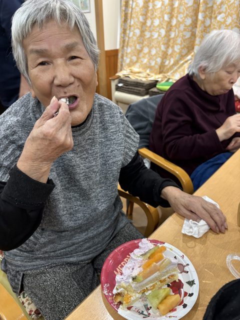 大きくて 豪華ケーキを 皆で食べましたー ヾ(*´∀`*)ノ おいしかったー!!