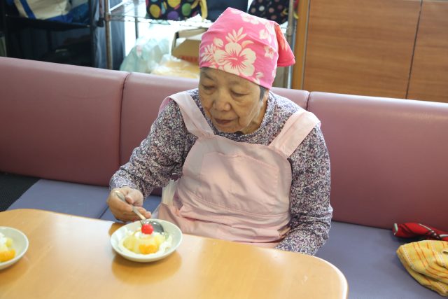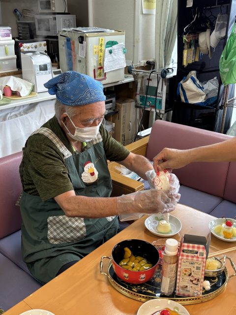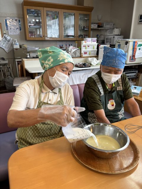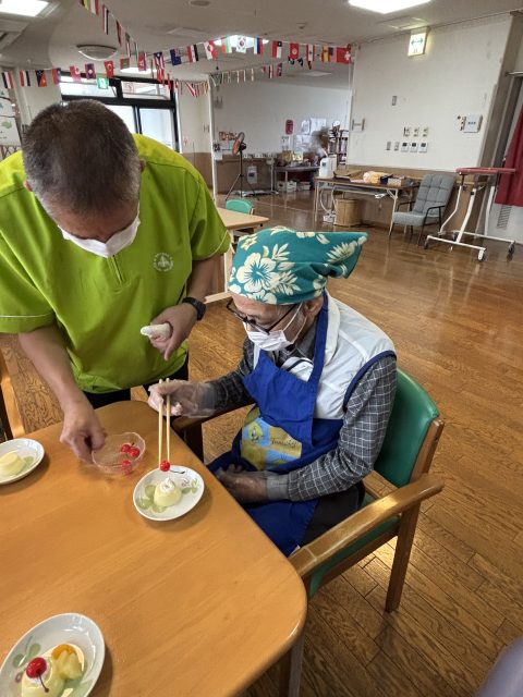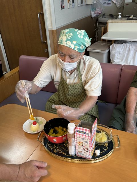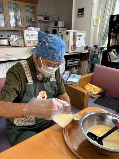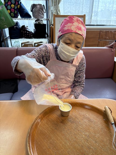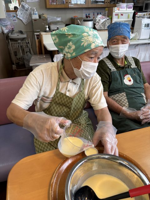 本日のおやつ作りは、「プリンアラモード」作りを皆さんで楽しまれました。