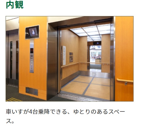 エレベーターも広く、車椅子4台と介助者を合わせた4人が