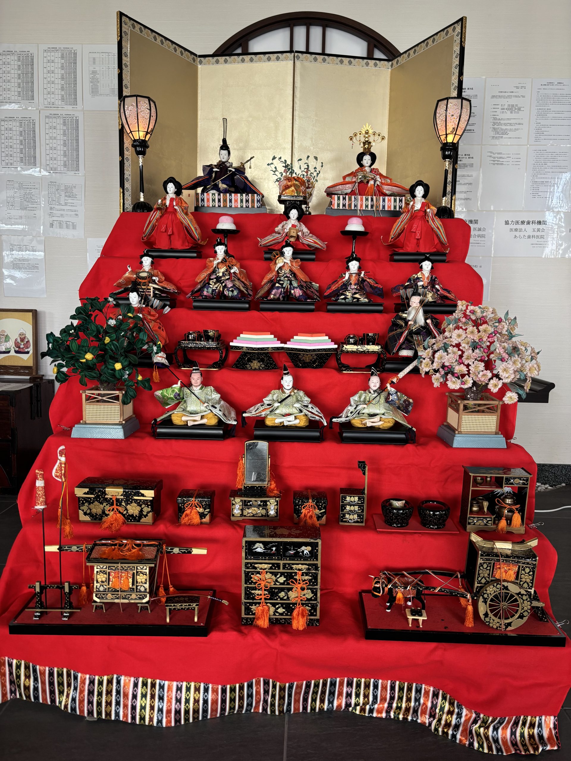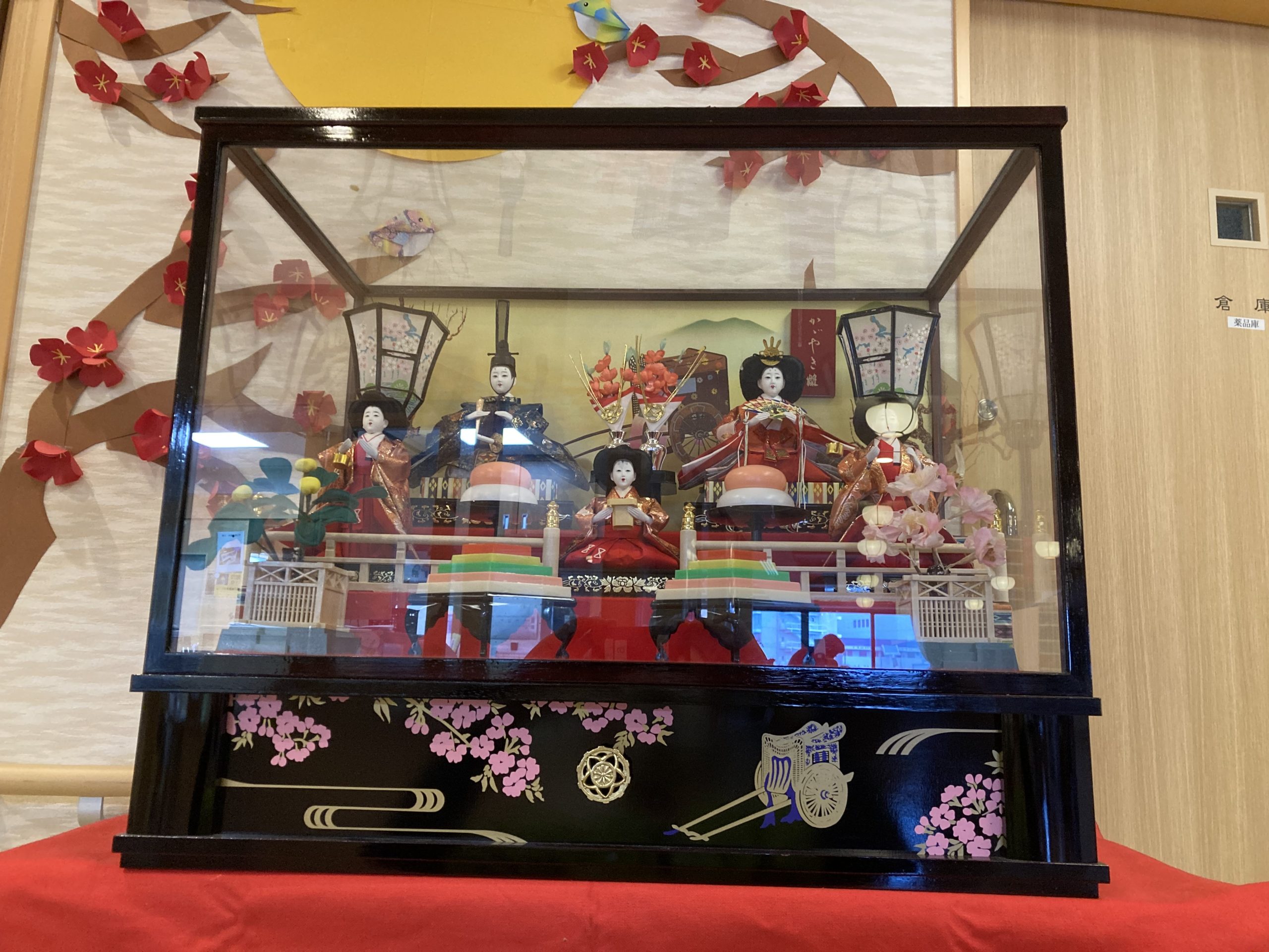 3月の菜乃花の玄関には、七段飾りのひな人形🎎が華やかに並び、春の訪れを感じさせてくれています。