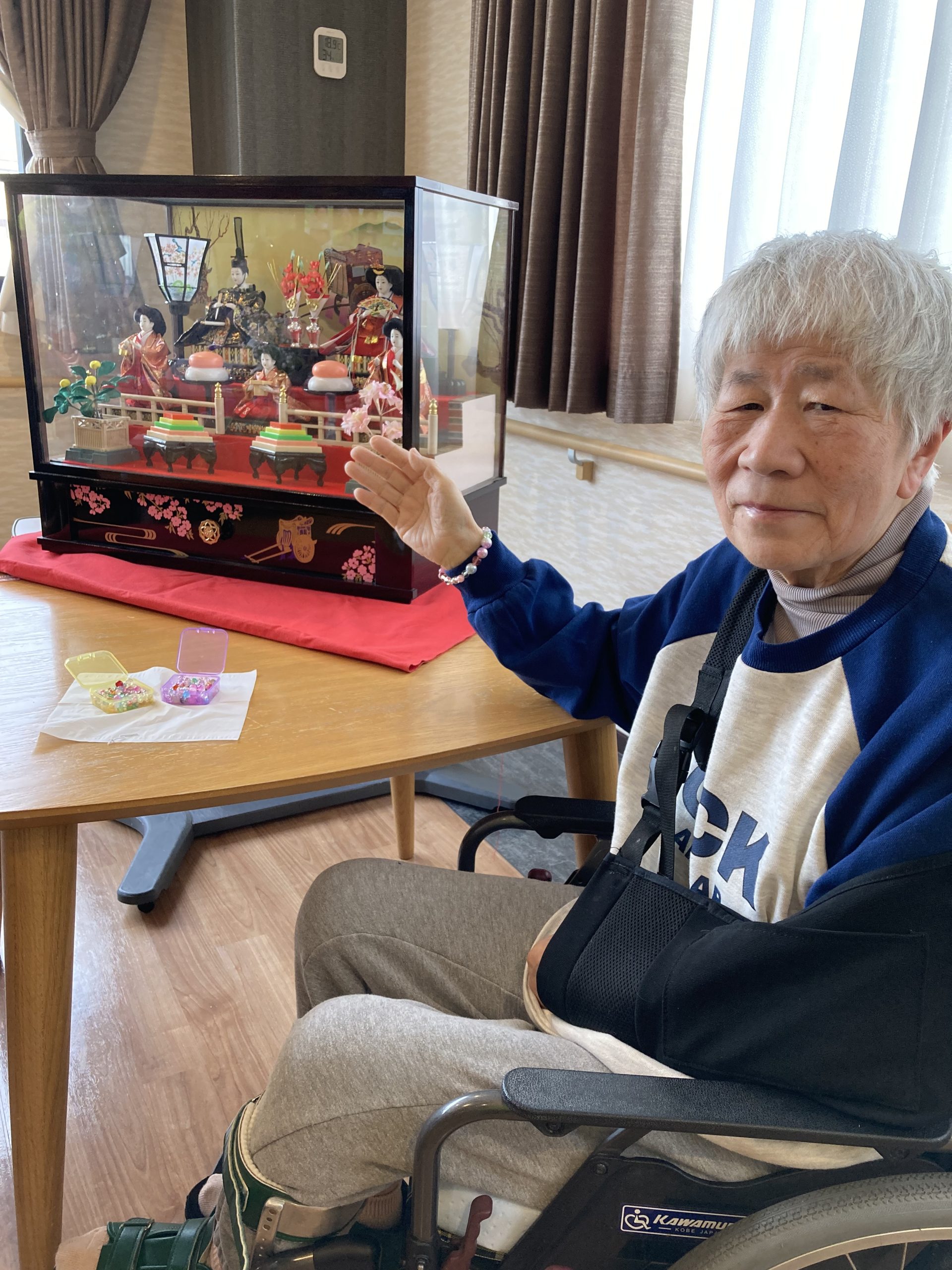 ひな人形🎎の前で、作品を手に記念撮影をされる方もおられ「うれしい!ありがとう。」と笑顔を見せてくださいました。