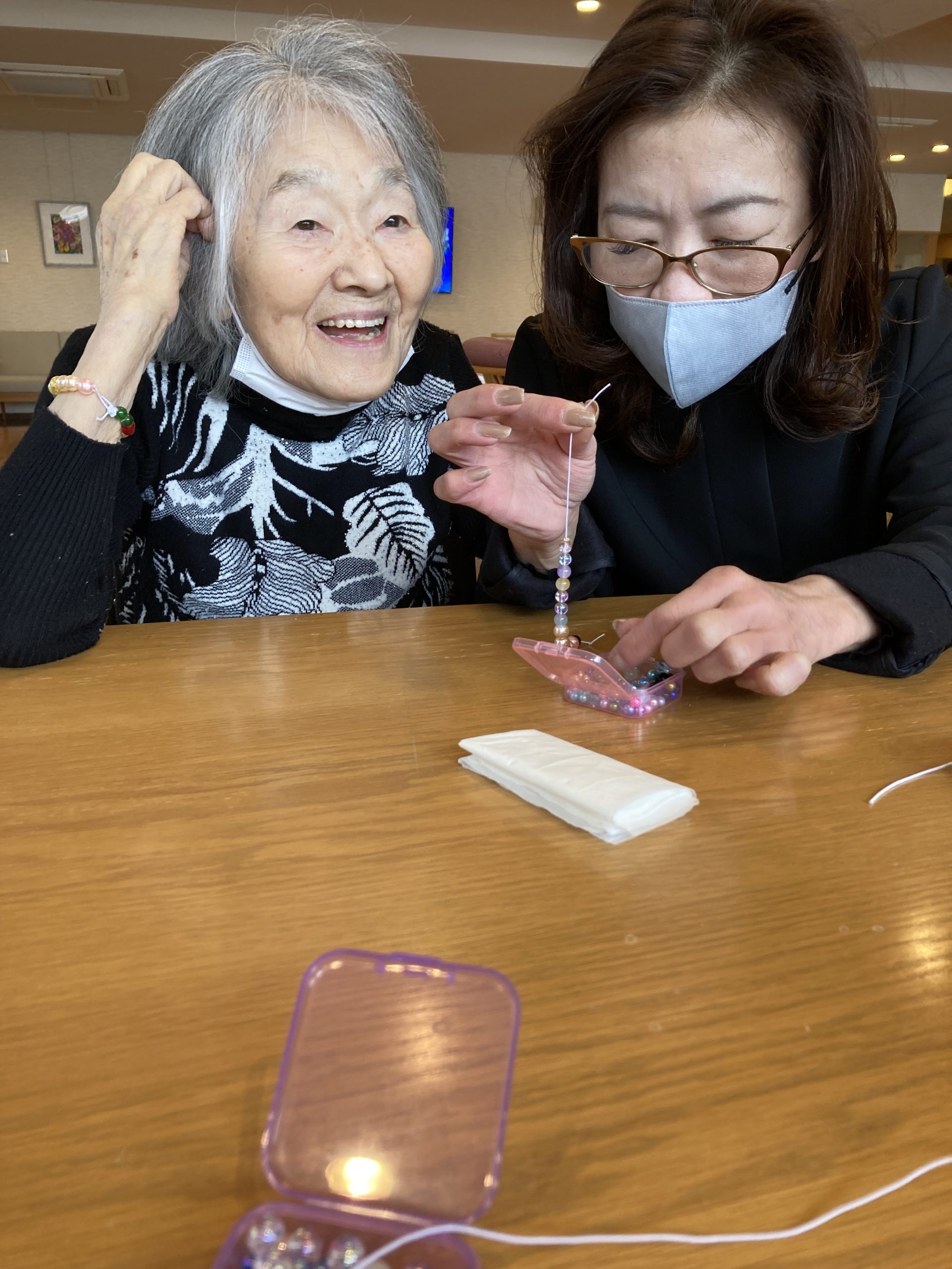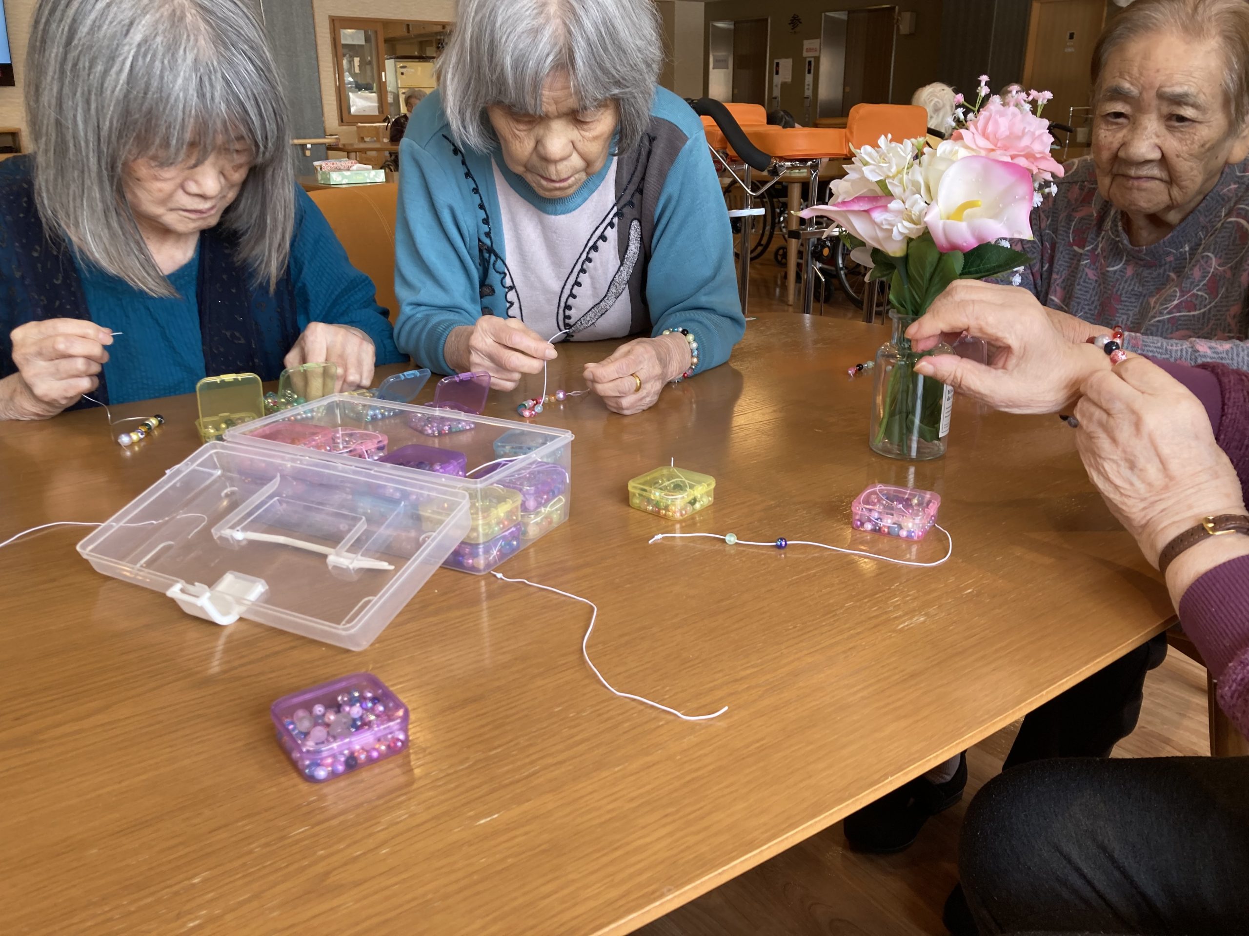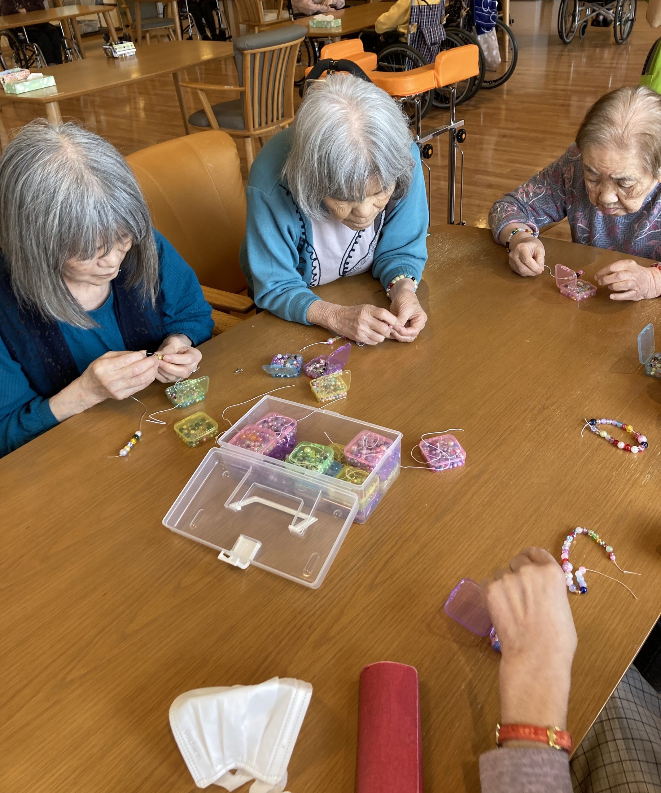 昨年10月から継続して来ていただき、ブレスレット作りは今回で6回目の訪問になります。