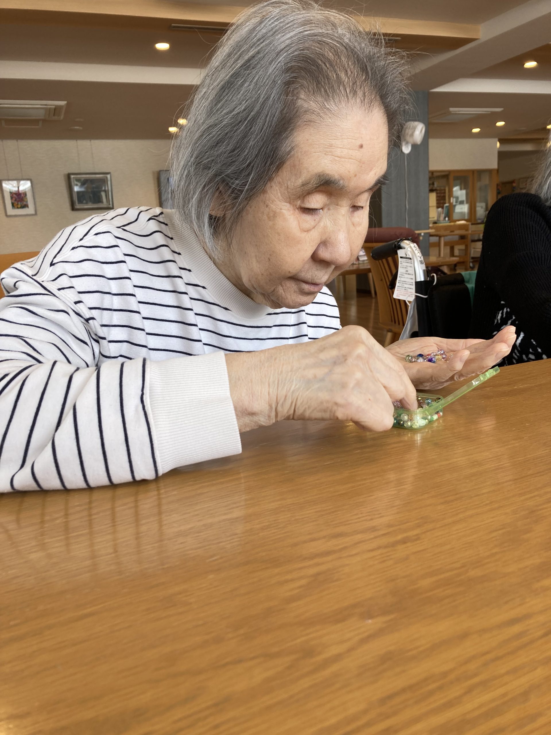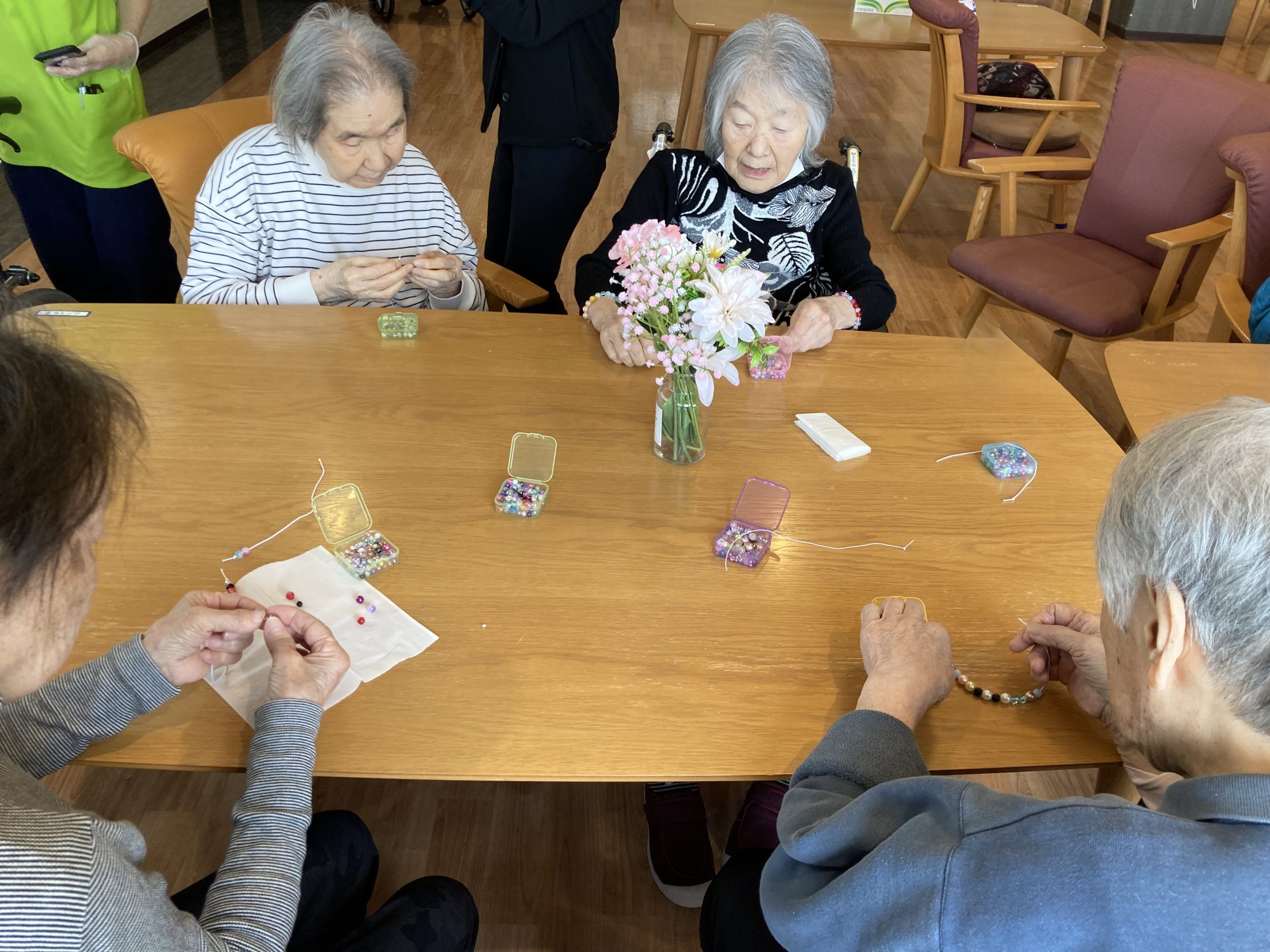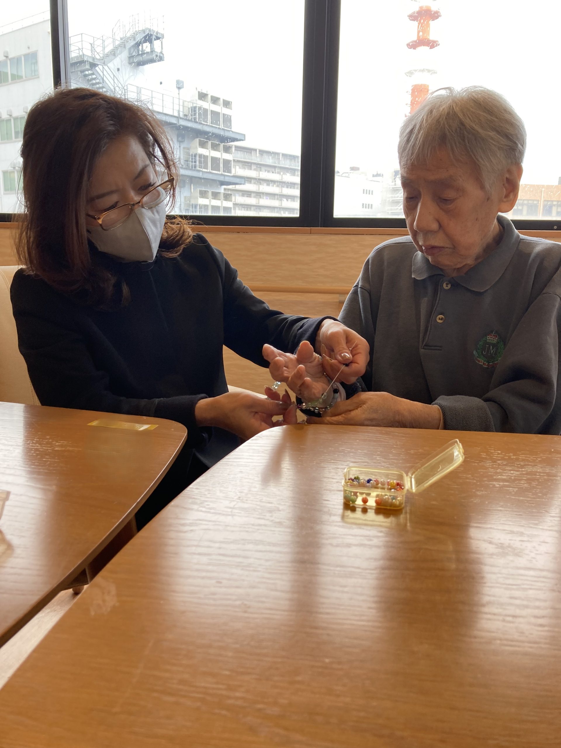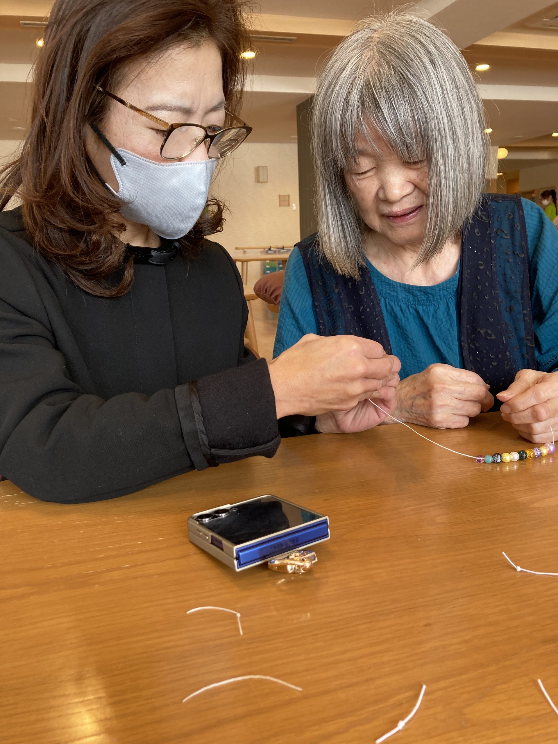 昨年10月から継続して来ていただき、ブレスレット作りは今回で6回目の訪問になります。