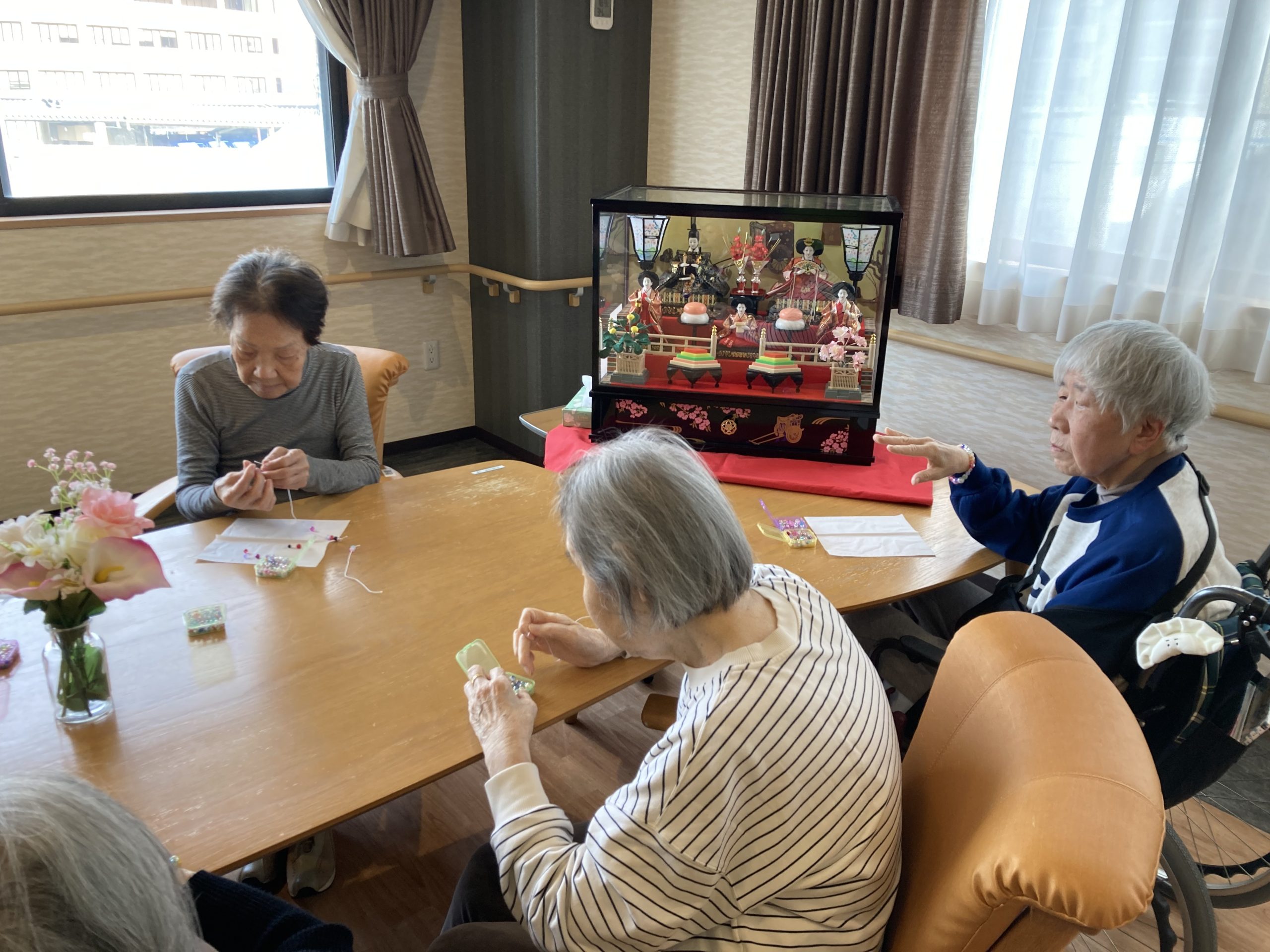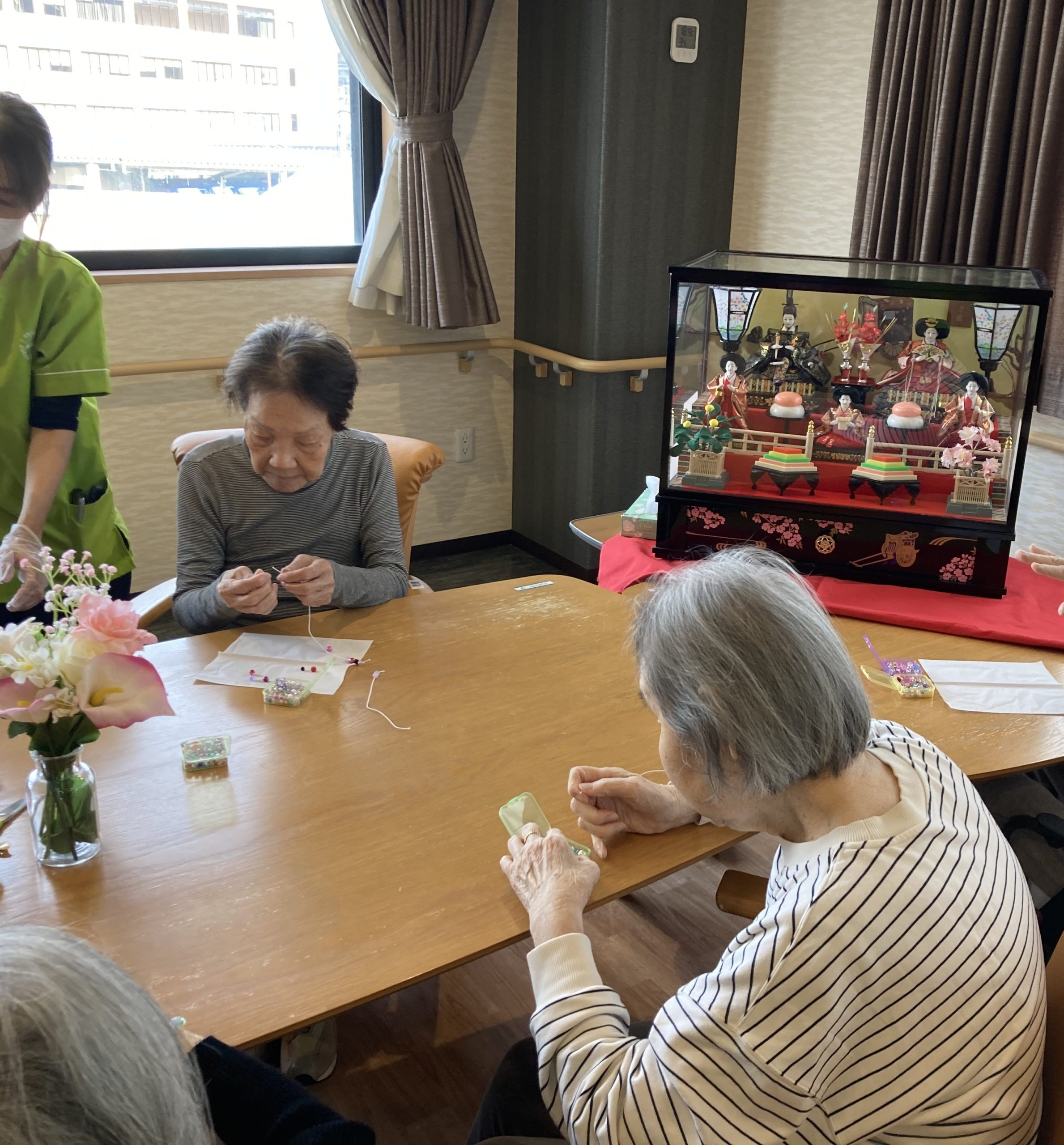 フロアにもひな人形🎎を飾り、今月もベルコ株式会社様がボランティアにお越しくださいました。
