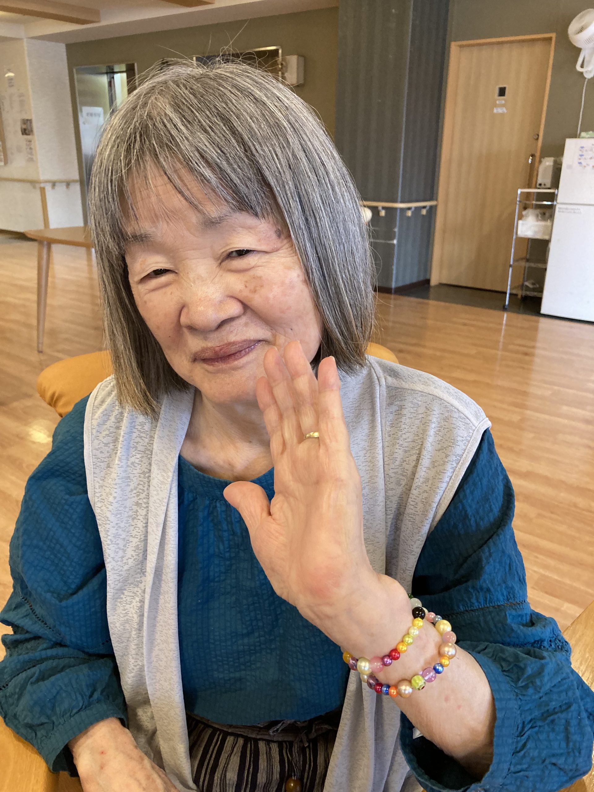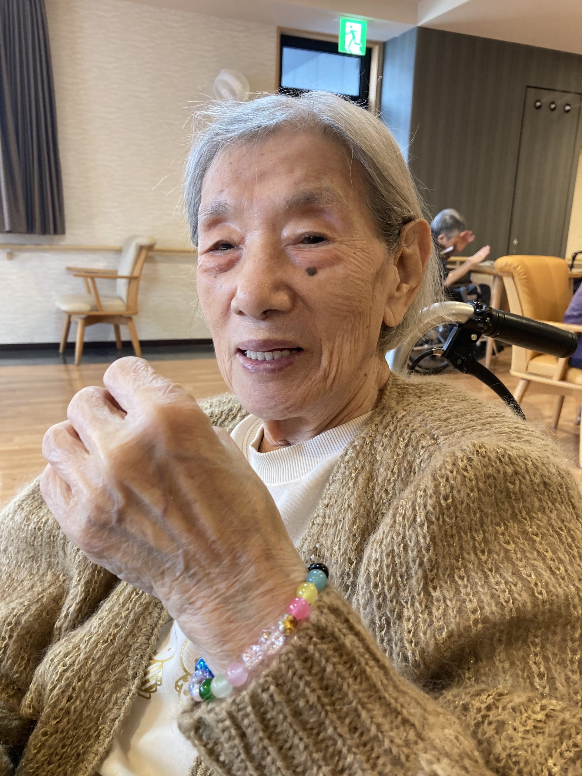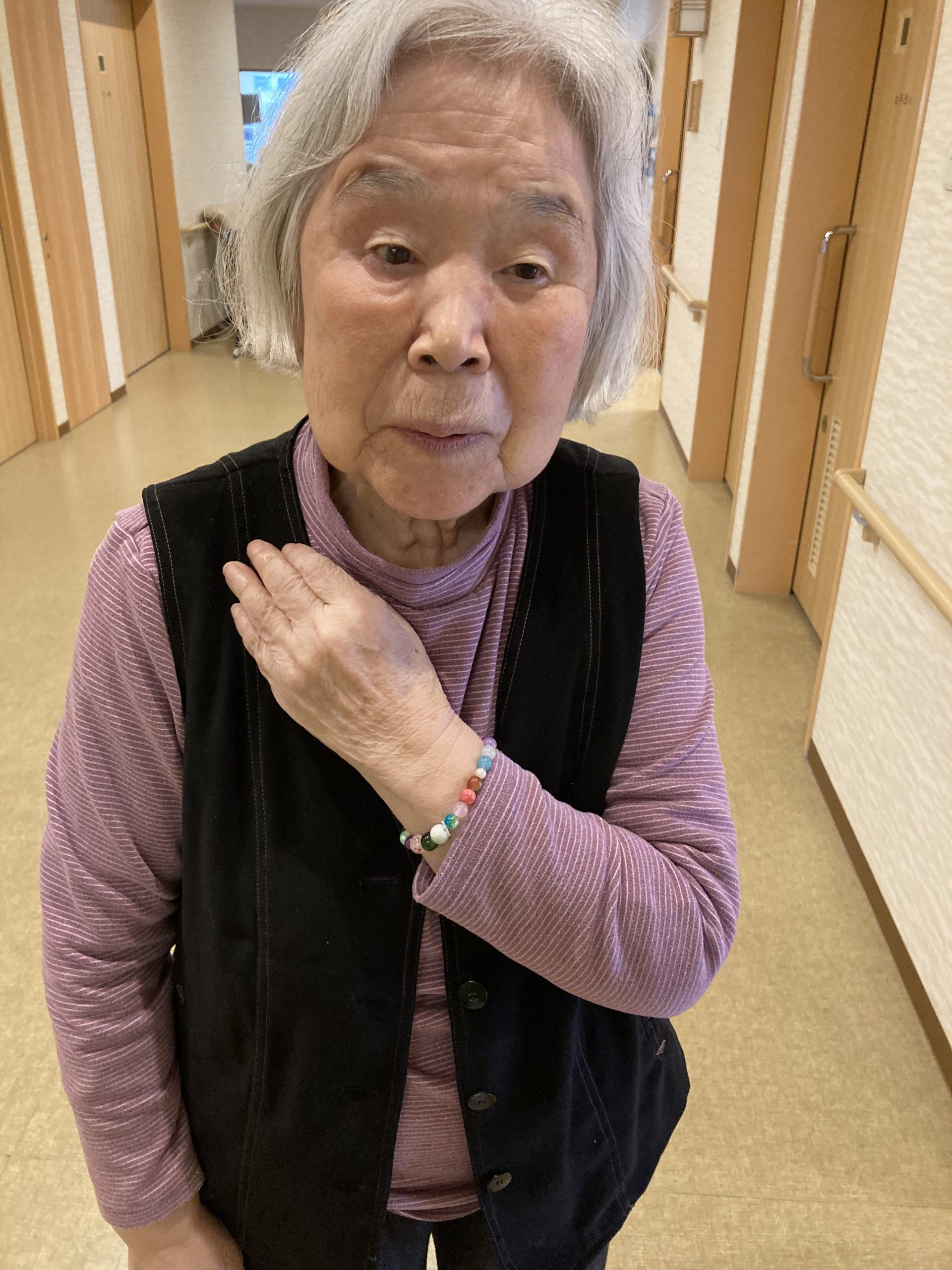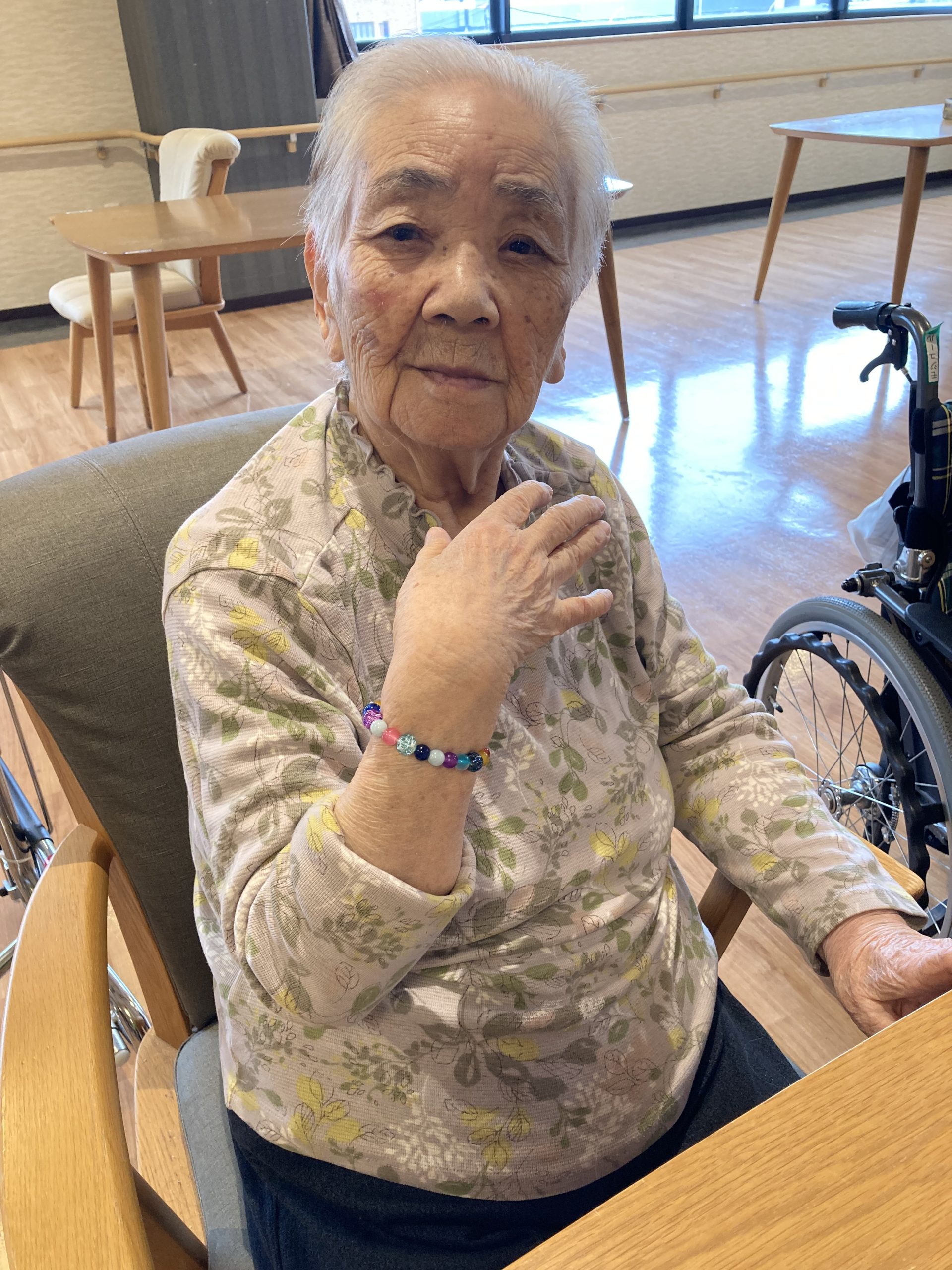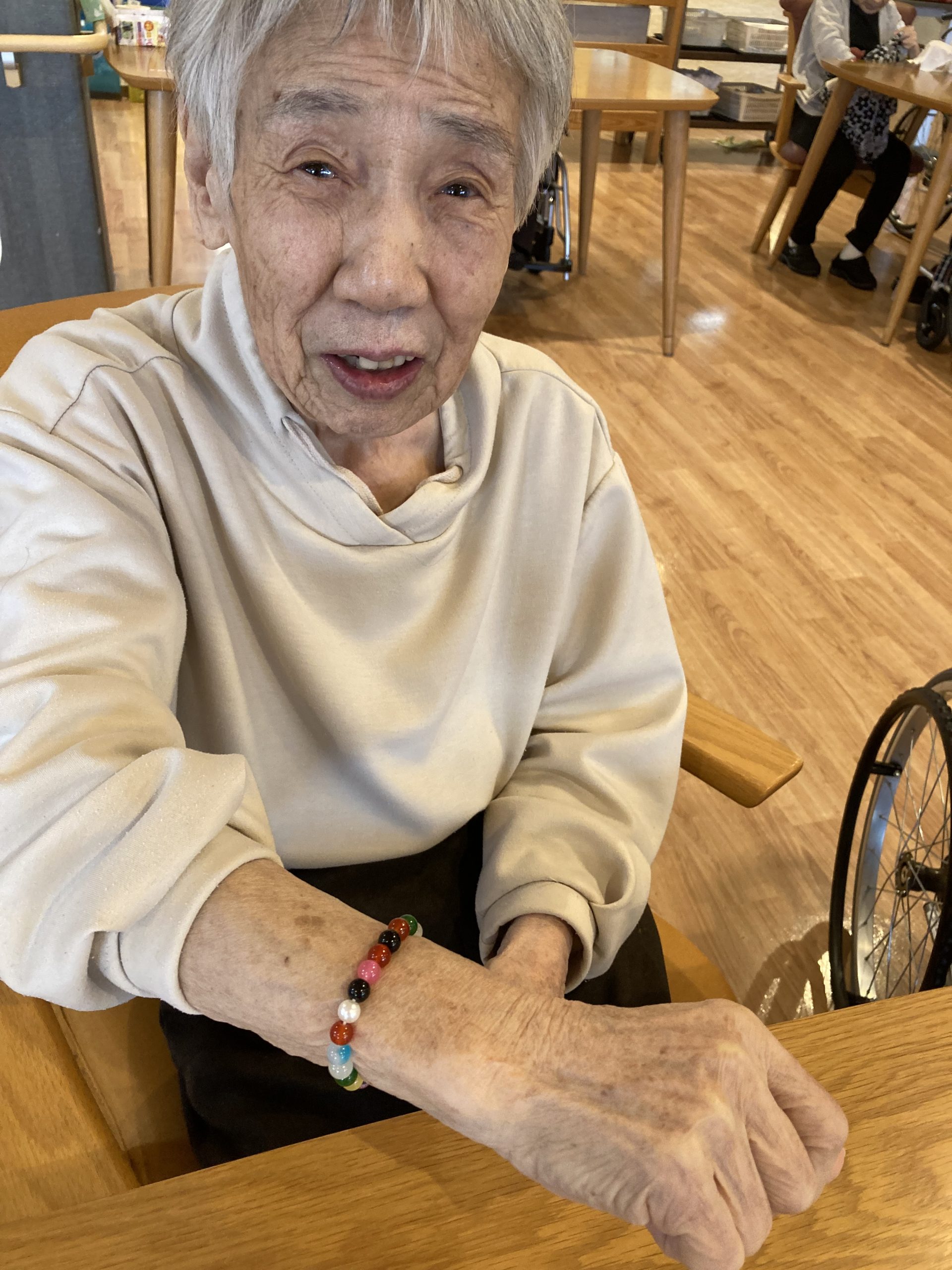 完成したブレスレットは、手首にぴったり合うように調整され、前回も参加された利用者さんは、「前よりもうまくできた。」と話されていました。