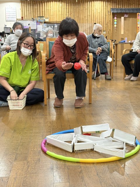 主にボールを投げたり、転がす事が多いかなと思います。