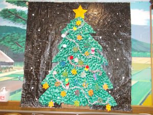 ツリーに、緑の折り紙を