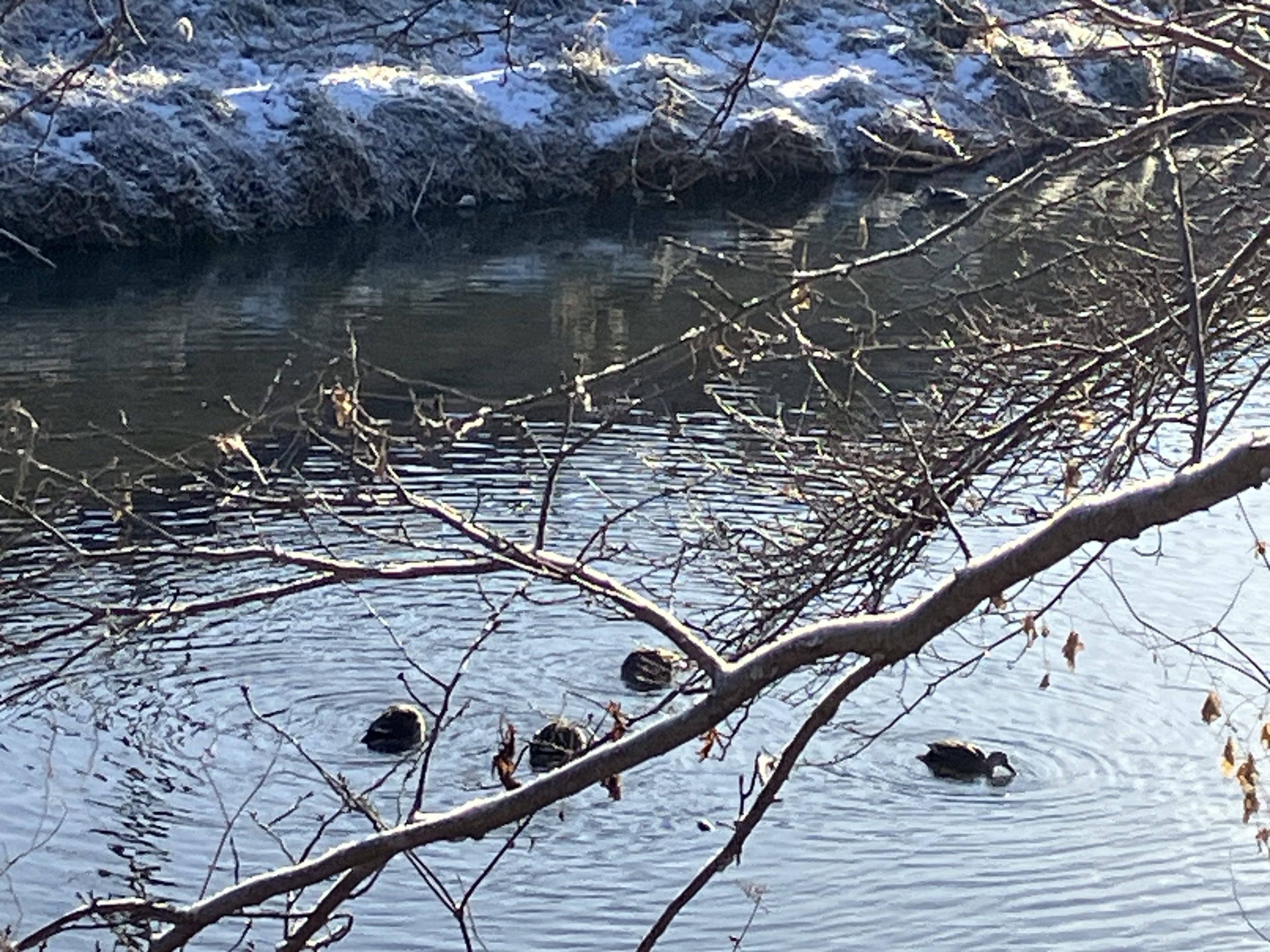 鴨に白鷺 寒いのに 水の中で元気にえさを探していました