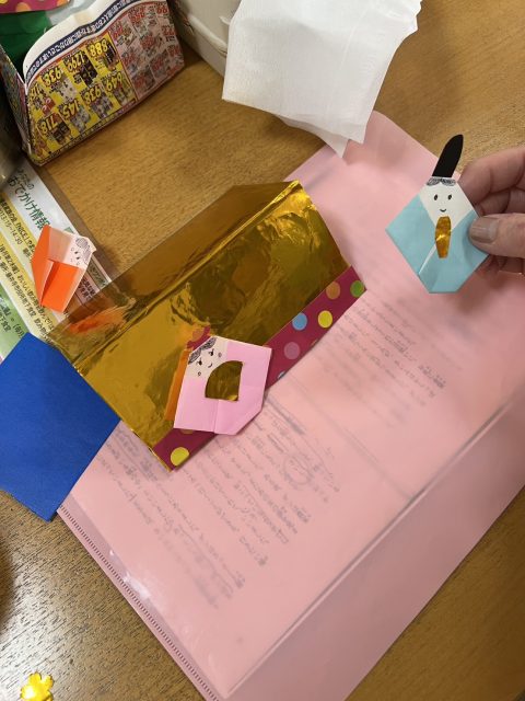 利用者様も、楽しみながらひな祭りの作品を作られました。