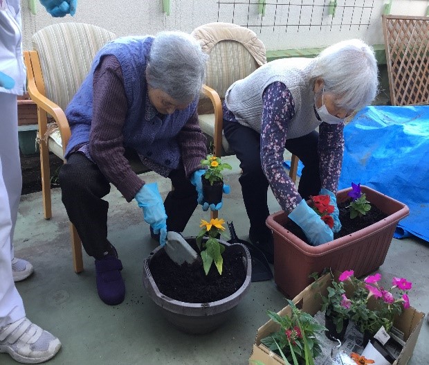 そんな中あかしあでは4階ベランダにてお花を植えています。