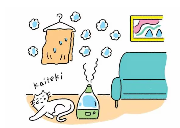 暖房を入れると空気が乾燥しがち。加湿器や濡れタオルを活用して、喉を守りましょう。