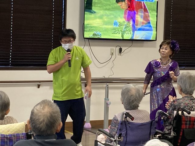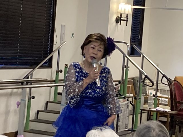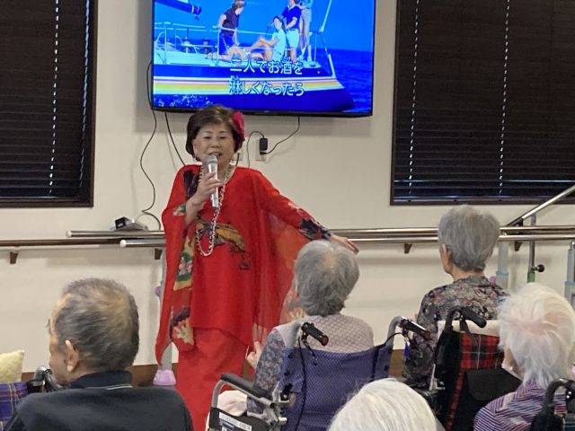 ご入居者様も、鈴やカスタネットを手に、一緒に歌っておられました。
