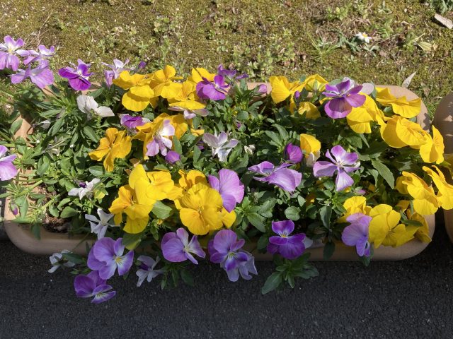でも、玄関前には色とりどりの、かわいい花が咲いています。