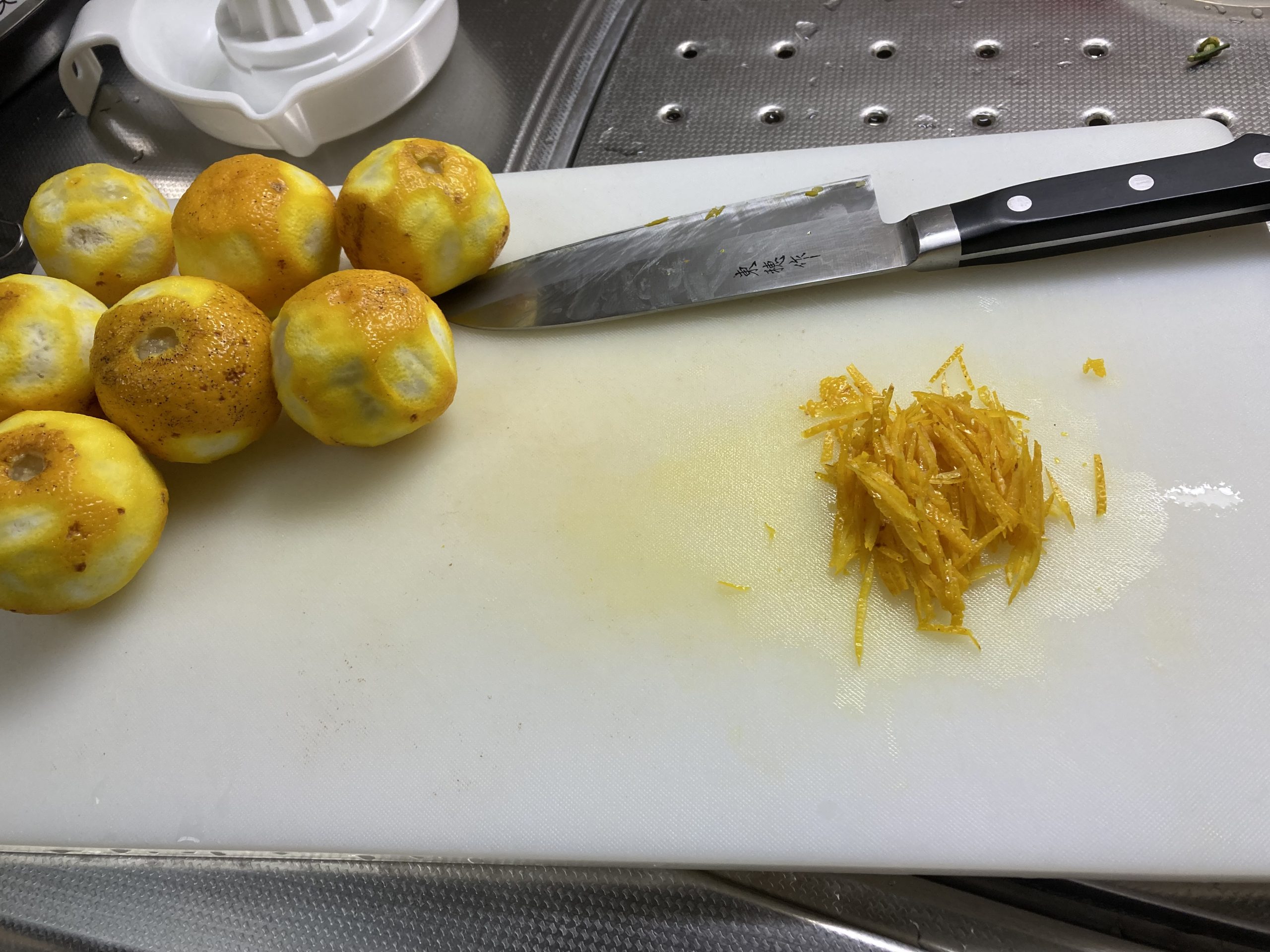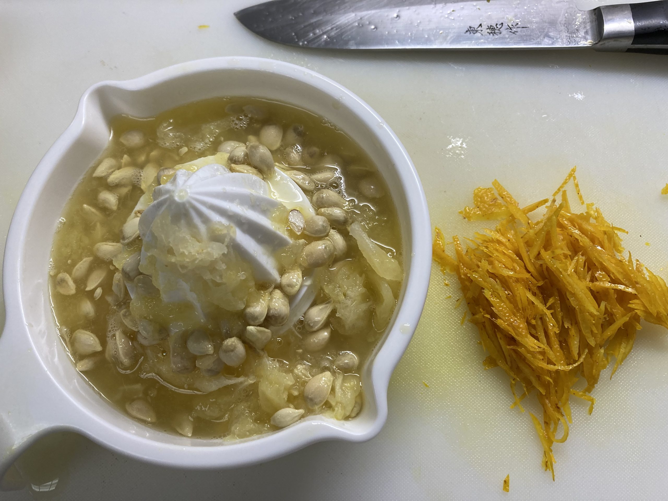 柚子の皮の綺麗なところを 千切りにして、果肉はしぼって