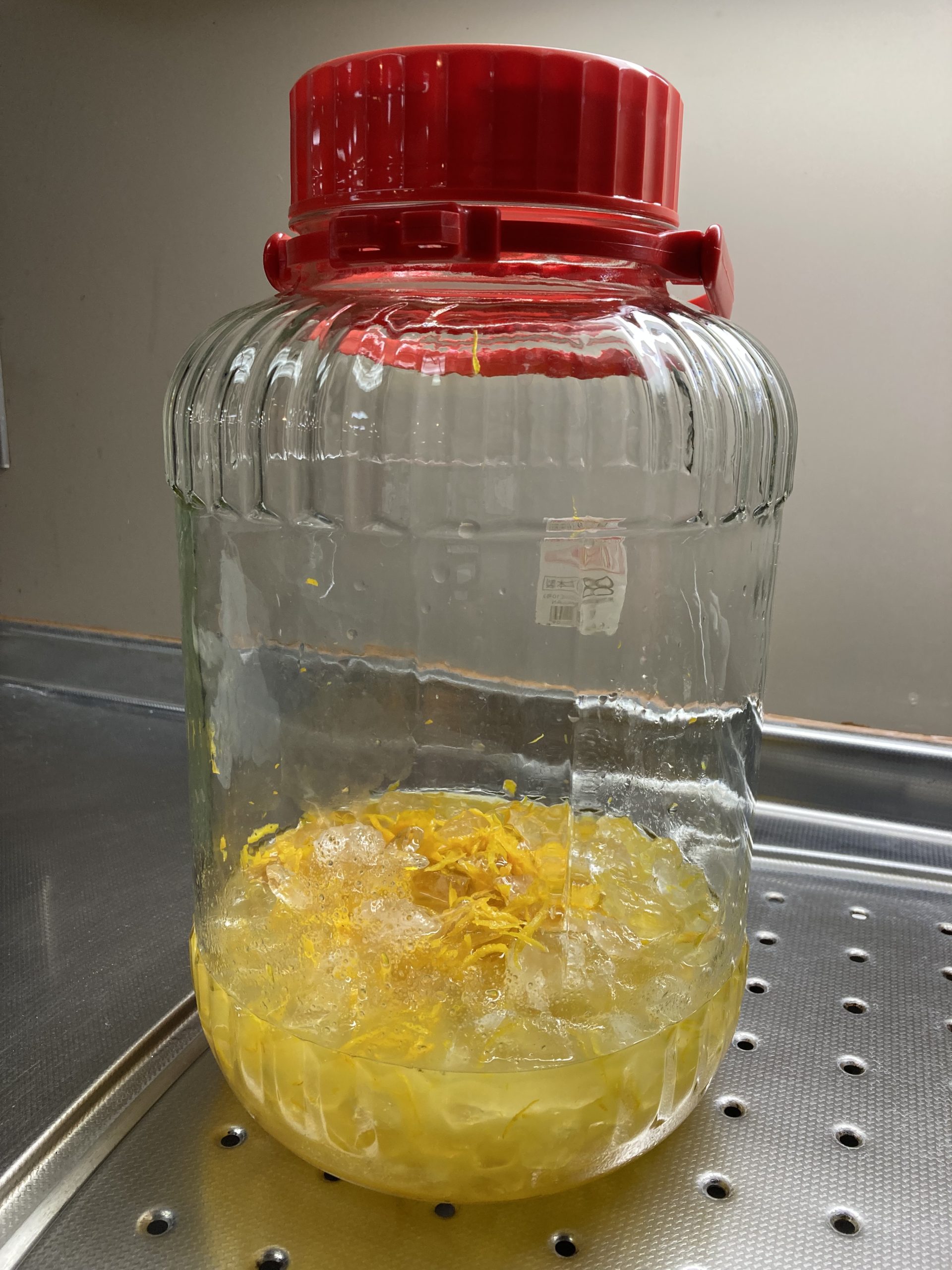 以前は果肉丸ごと漬け込んだのですが、少し苦みが出たので、今年はお上品に