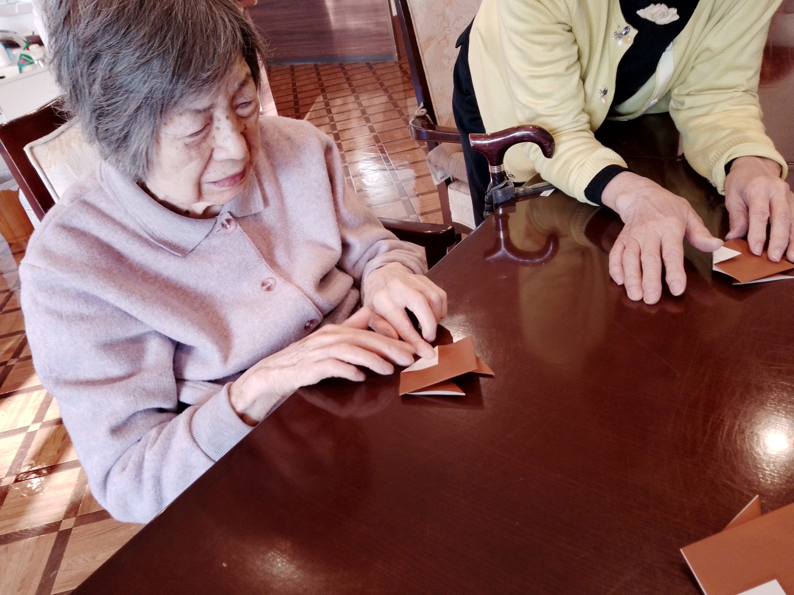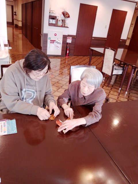 その後も仲良く教え合いをしながら干支のうまを折って楽しく過ごされてました