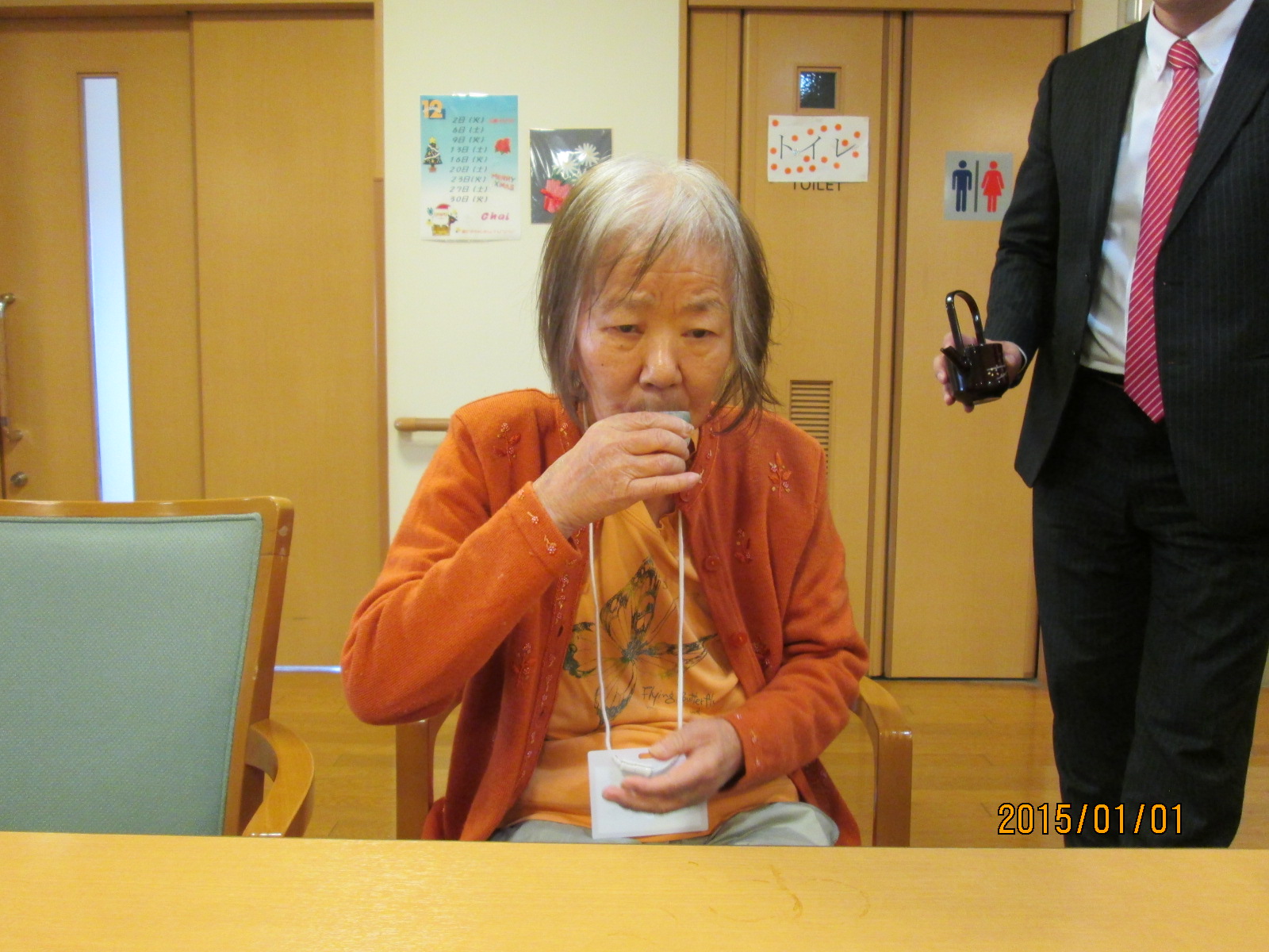 こちらは98歳の利用者様・・お屠蘇召し上がっておられます