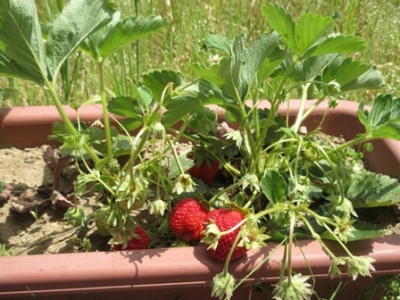 プランターのいちごも赤くなりました♪