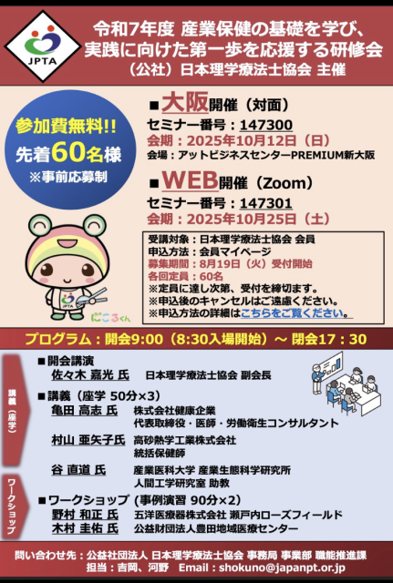 『産業保健の基礎を学び、実践に向けた第一歩を応援する研修会』