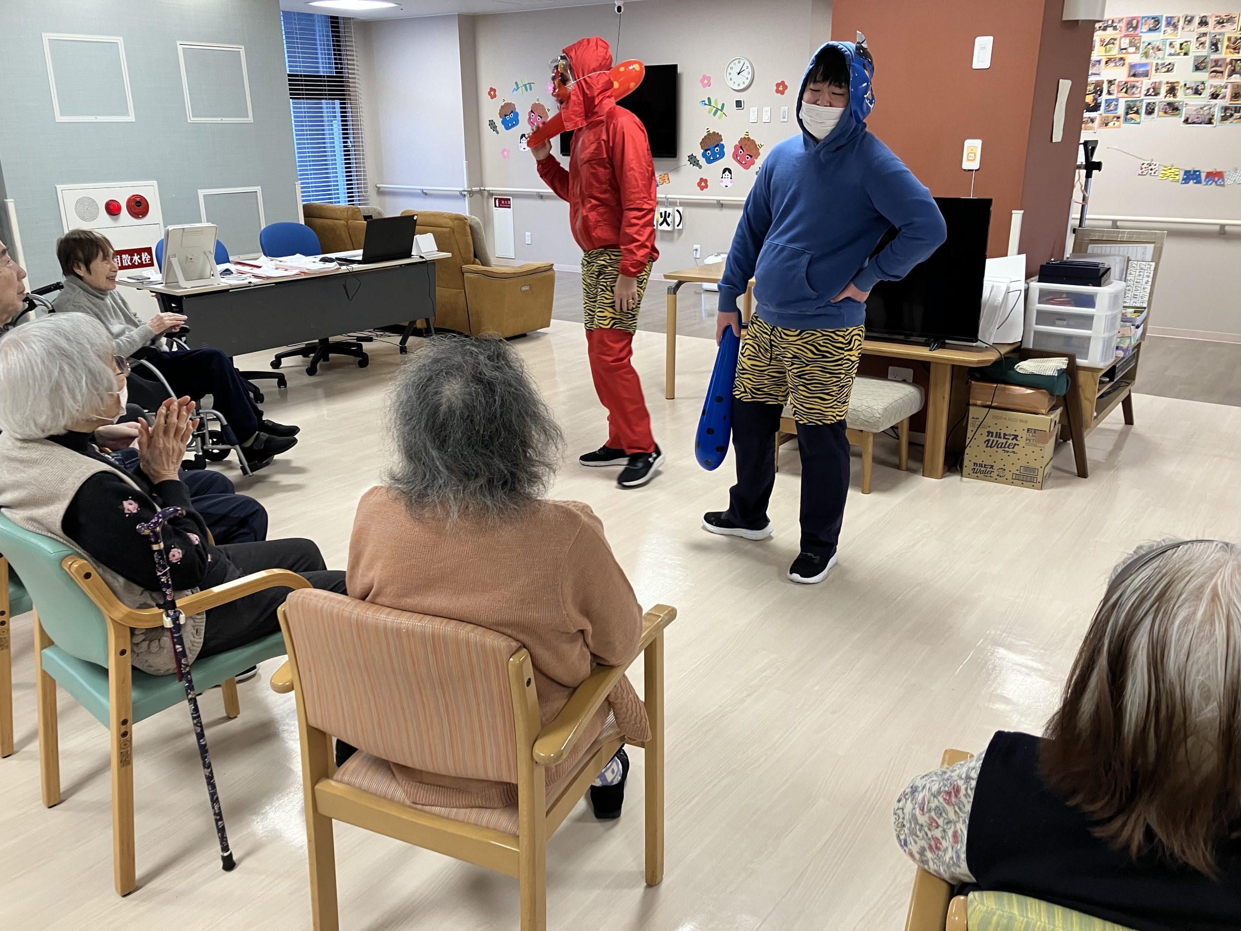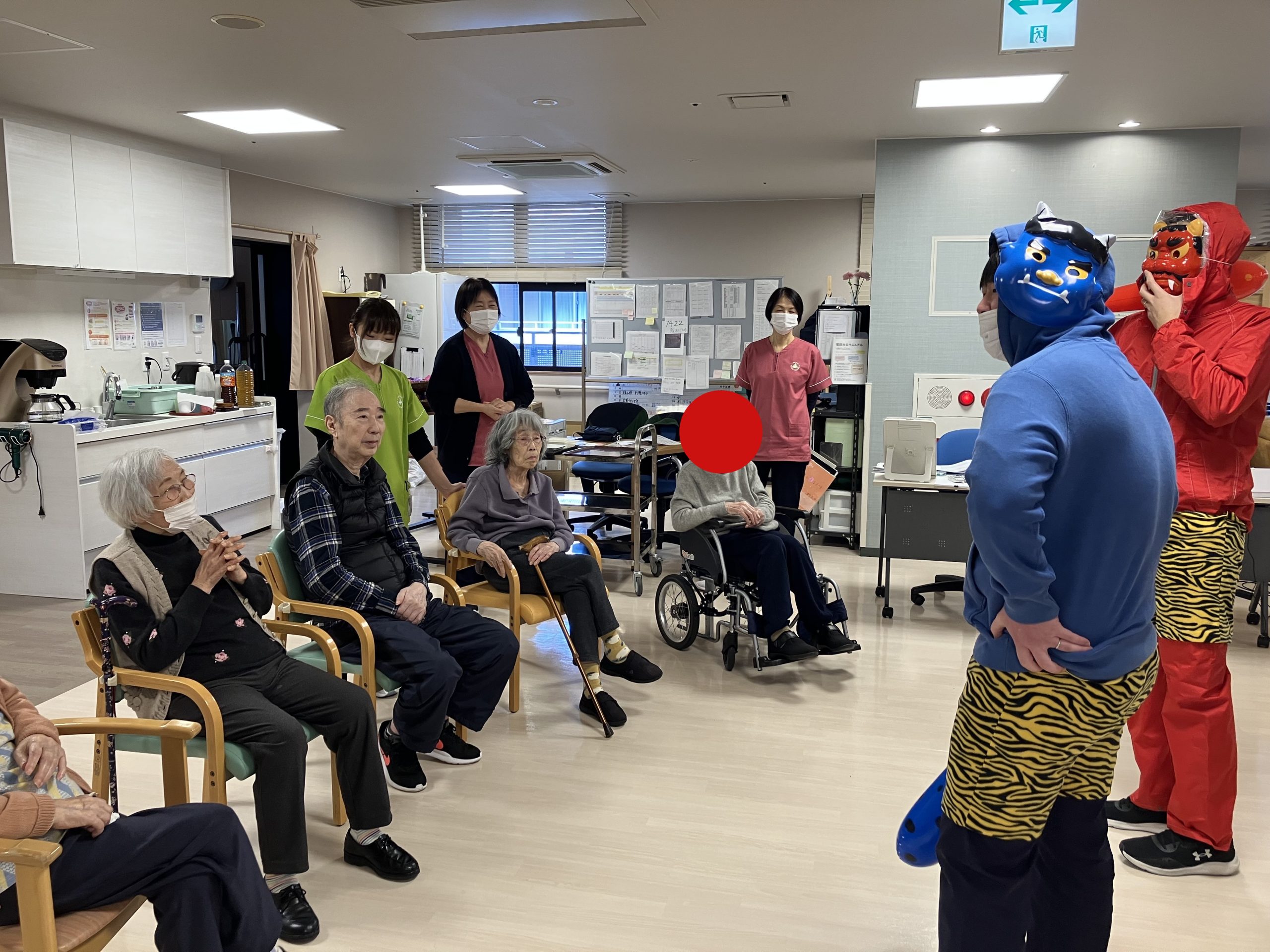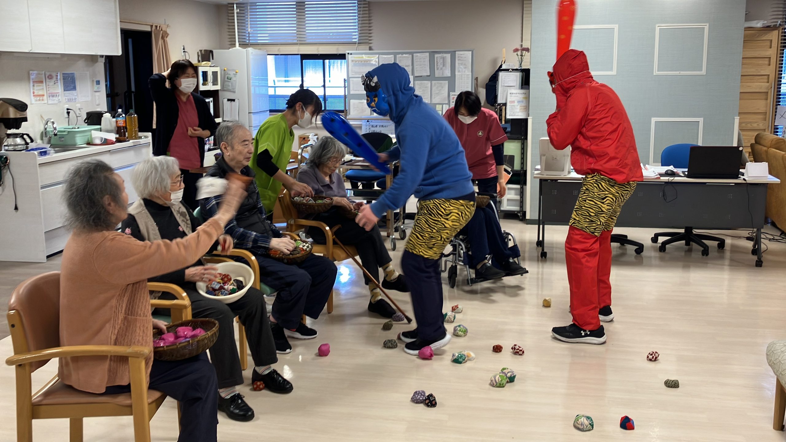 メルヴェイユ吹田の看多機では1年間の無病息災を願い職員が鬼の恰好をして登場しました。