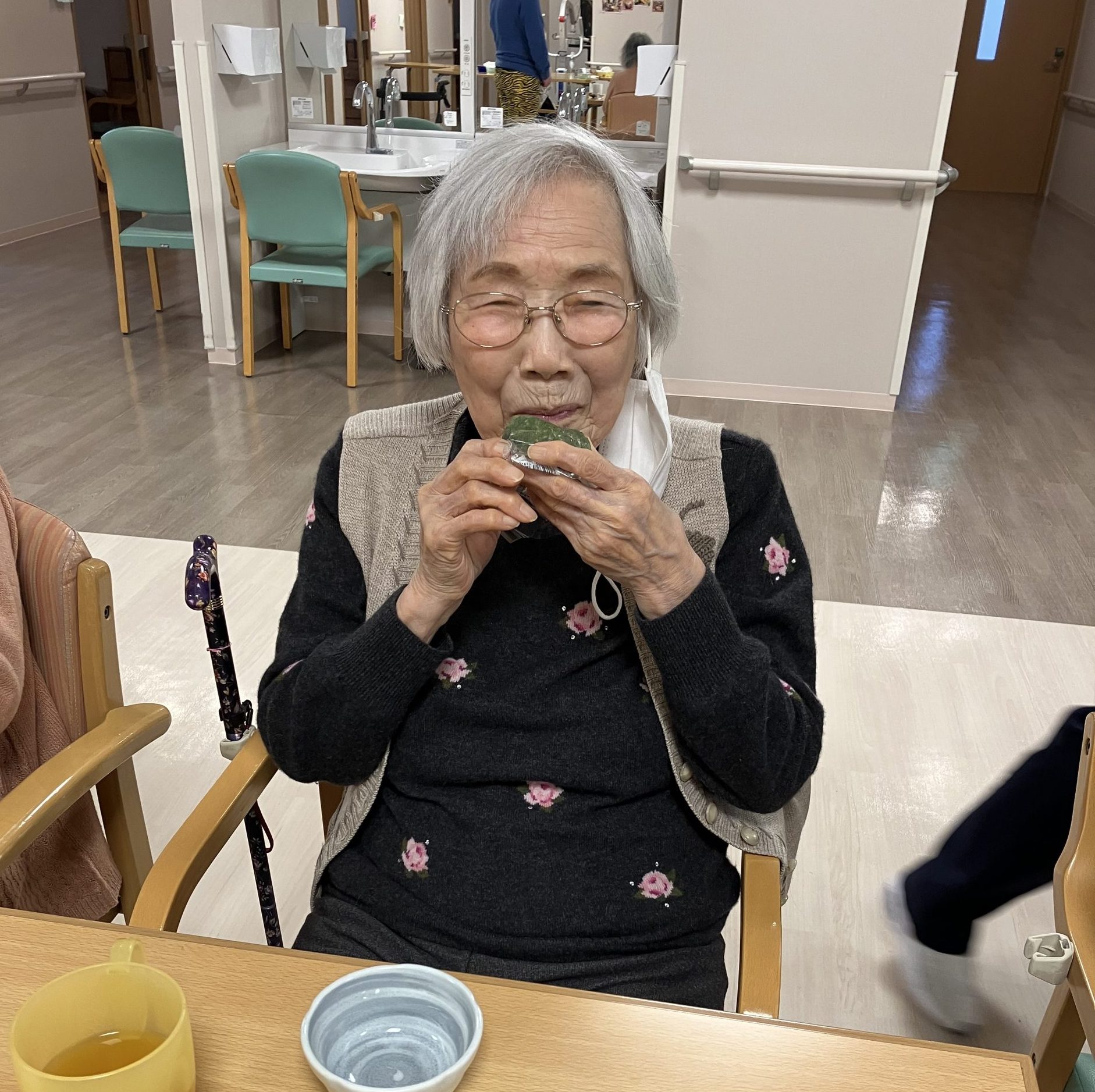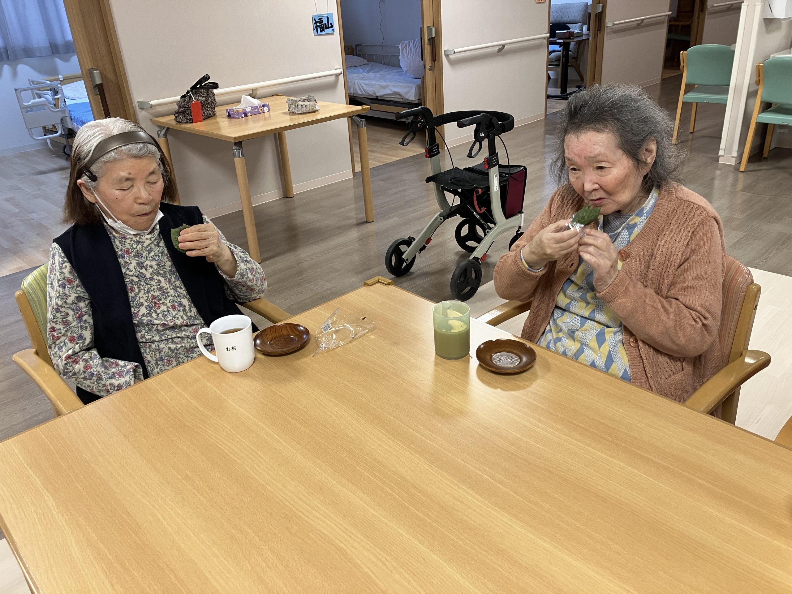 豆まきで疲れて「休もうかな」と言われていた方も、よもぎ餅を見て休む事を忘れて食べられ「美味しい・うまいな」など皆さま言われていました。