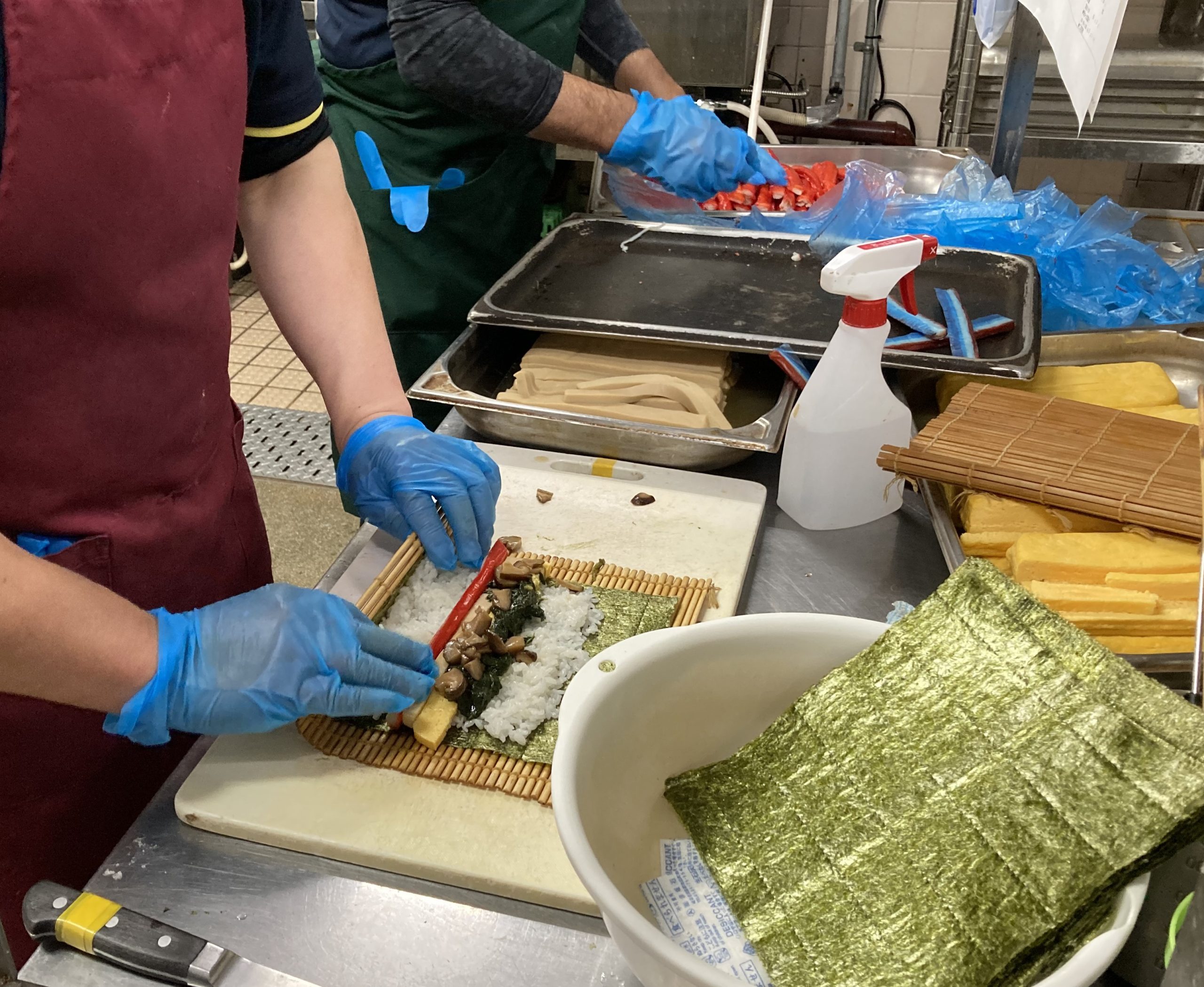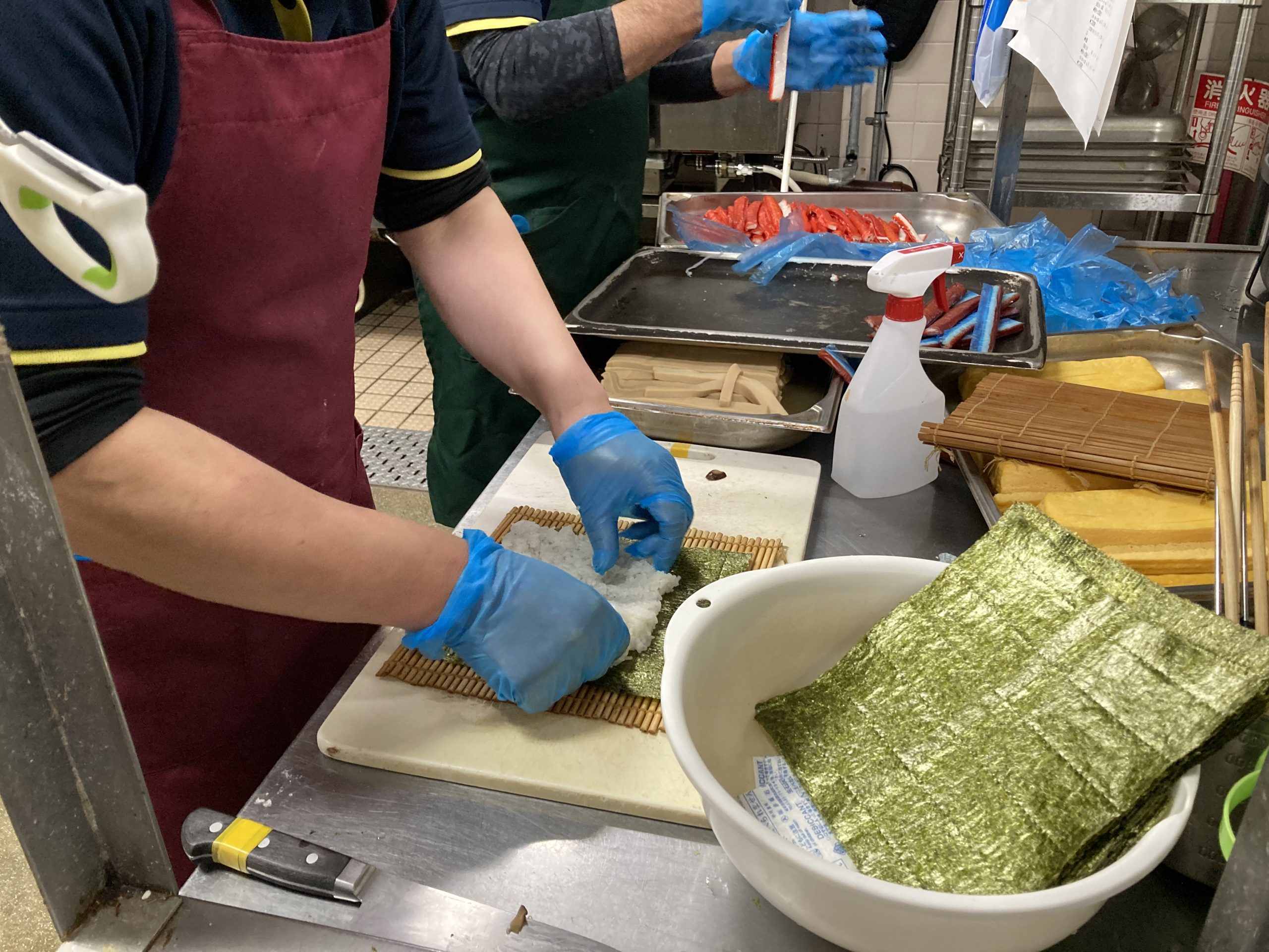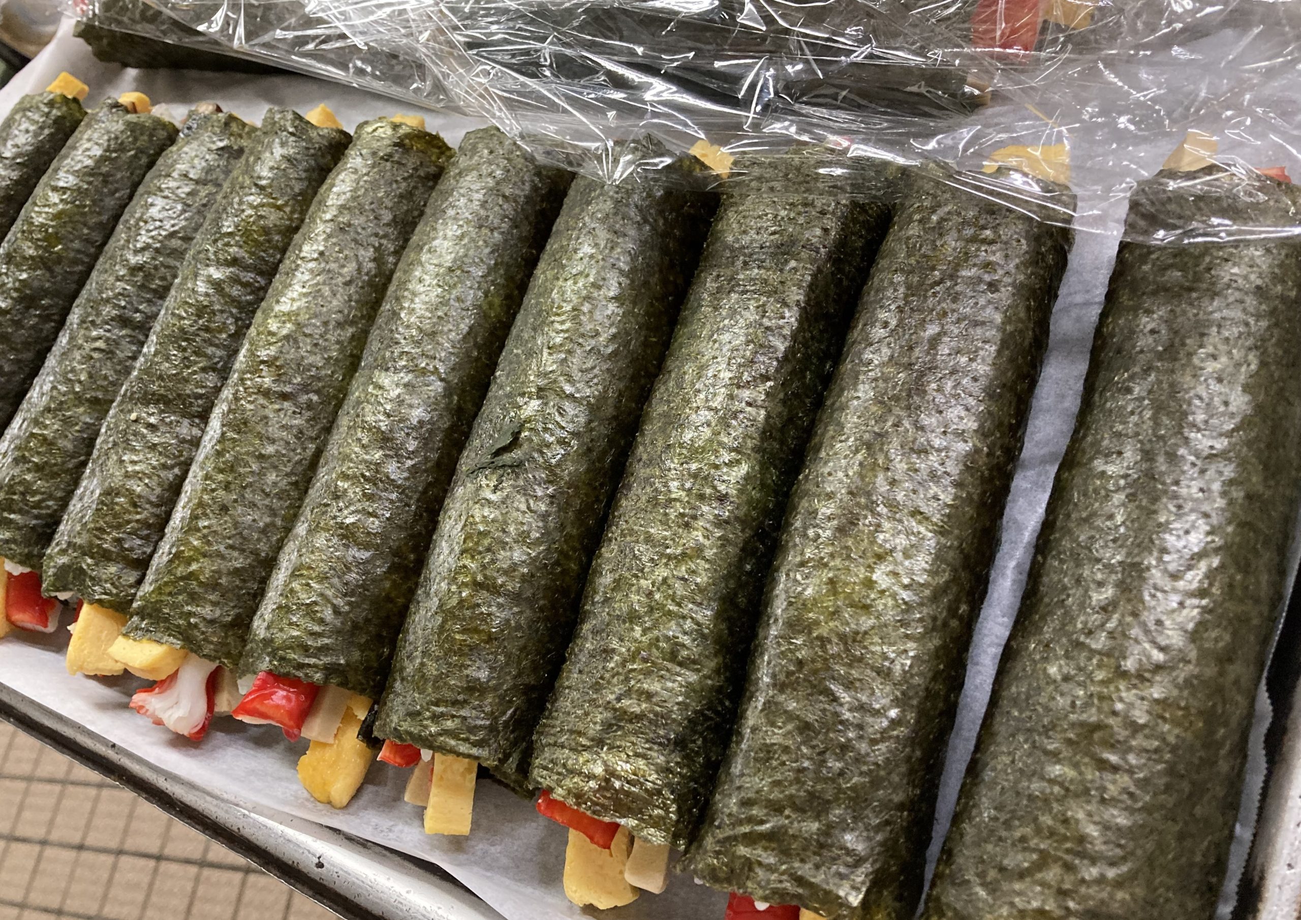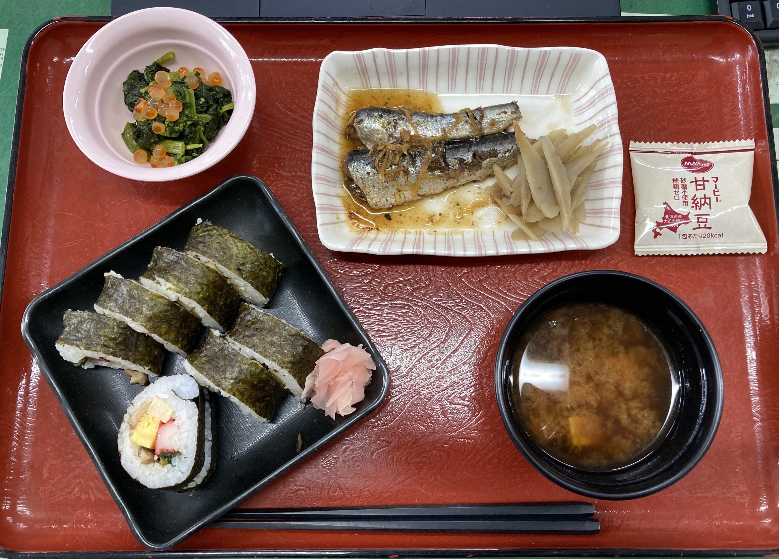 鬼退治で運動した後は 楽しみにしていた 巻き寿司 です