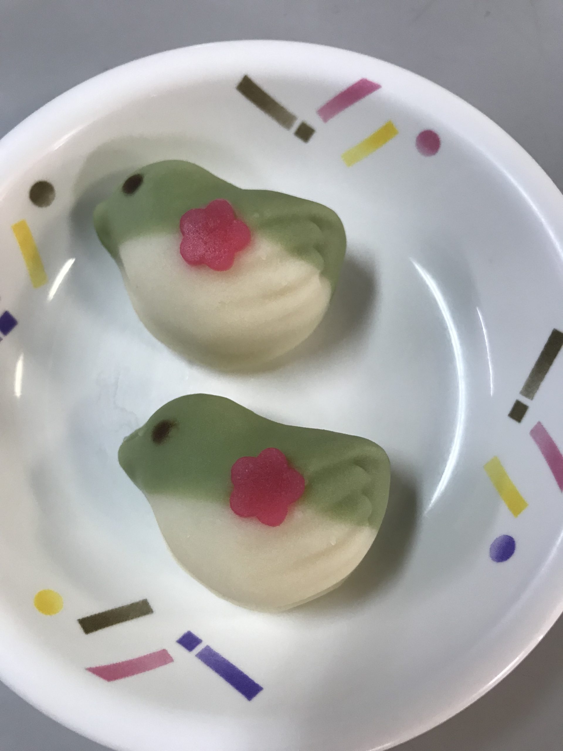 先日おやつに かわいい うぐいす のお饅頭を