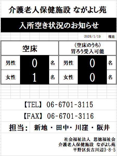 女性に空床が出ています❕