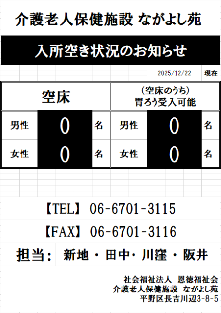 ありがたいことに入所待ちの方で空床は埋まりました。