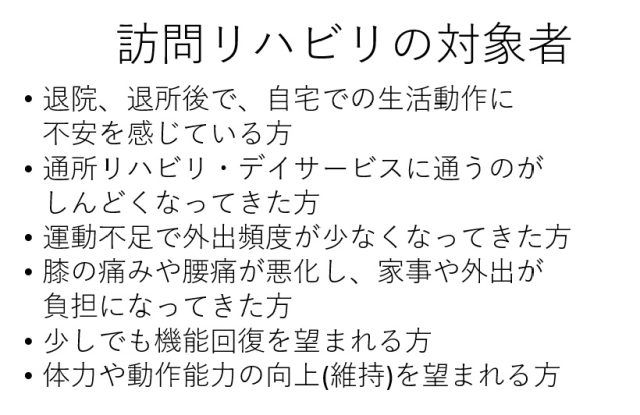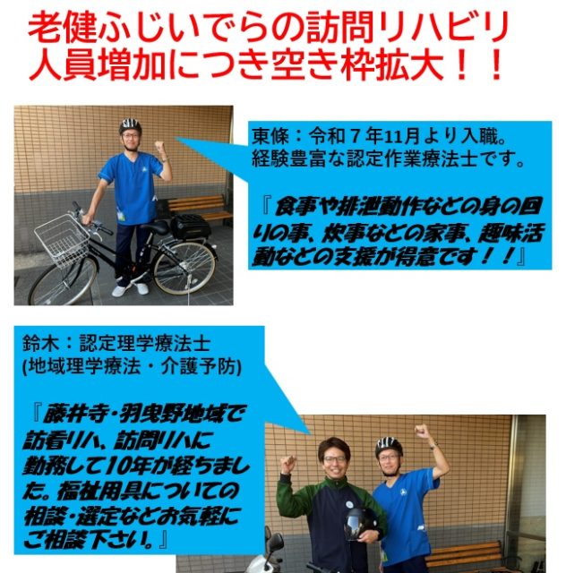 介護老人保健施設ふじいでらの訪問リハビリです。