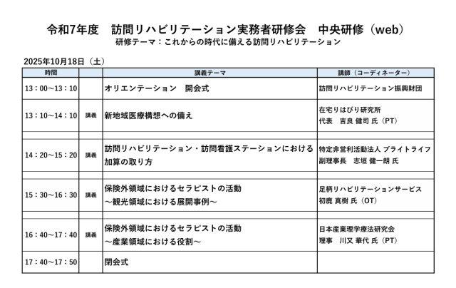 10月18日に訪問リハビリ実務者研修会(中央研修)に
