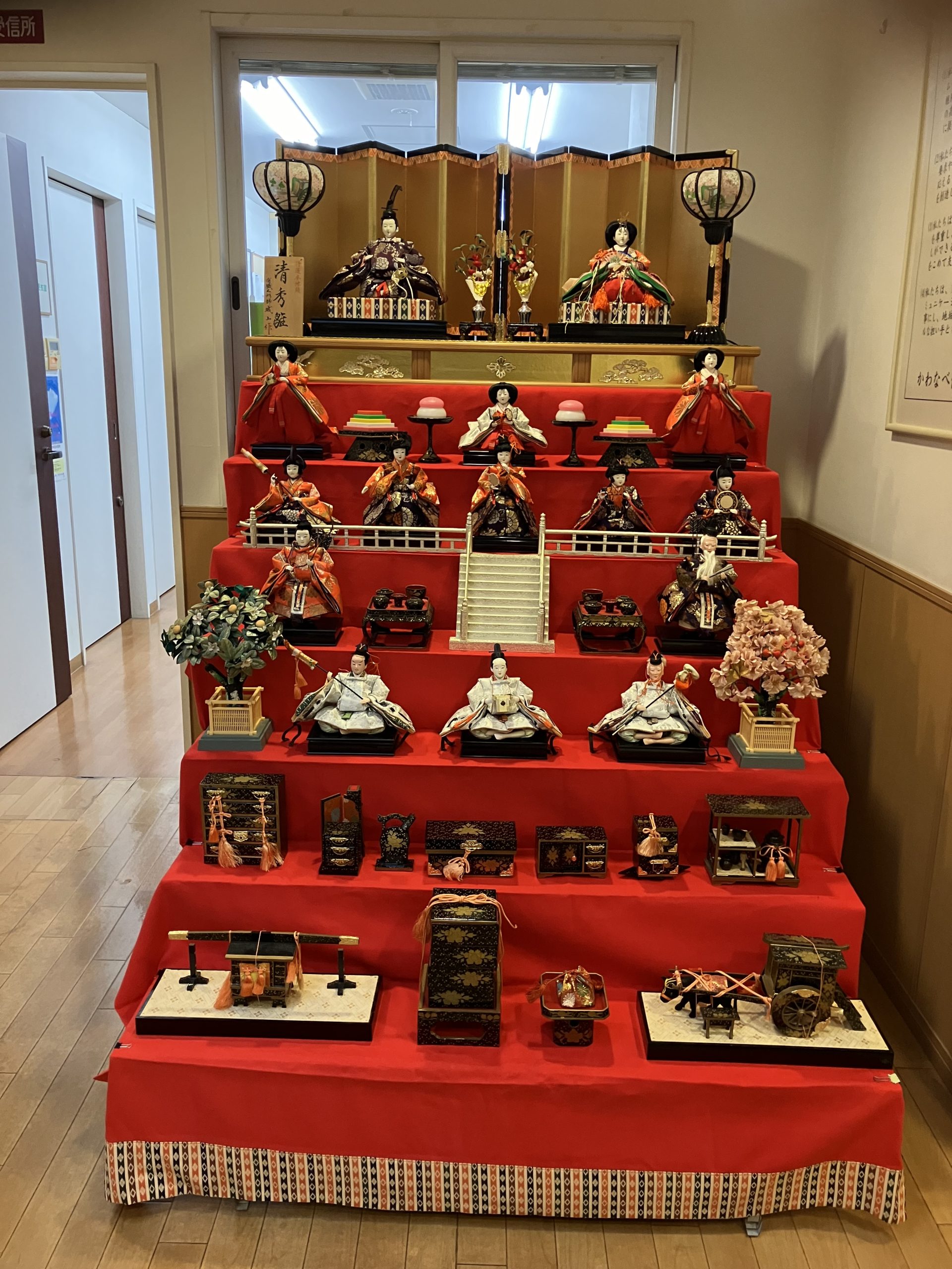 さて今日は雛飾りを利用者様にお手伝い頂きました。
