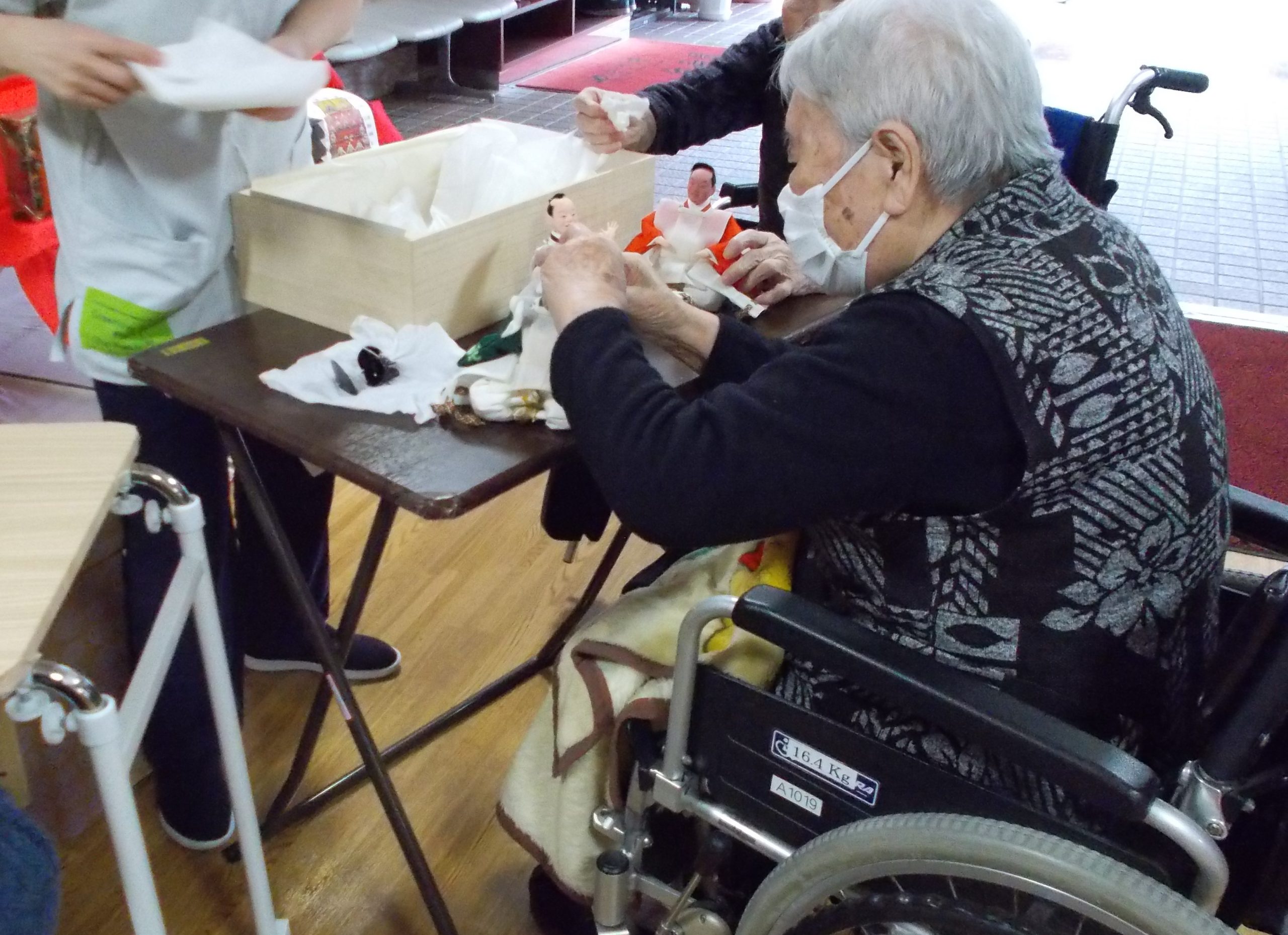 はやくお雛さんを飾らなければ とご利用者様と一緒に