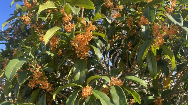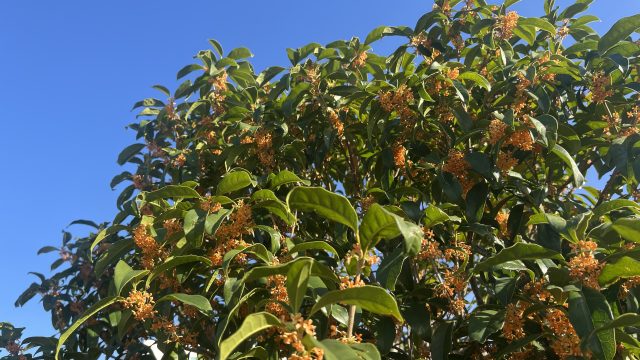 気温がまだまだ高いせいか、私の大好きな金木犀はどうやらまだちらほらとしか咲いていないようです・・・