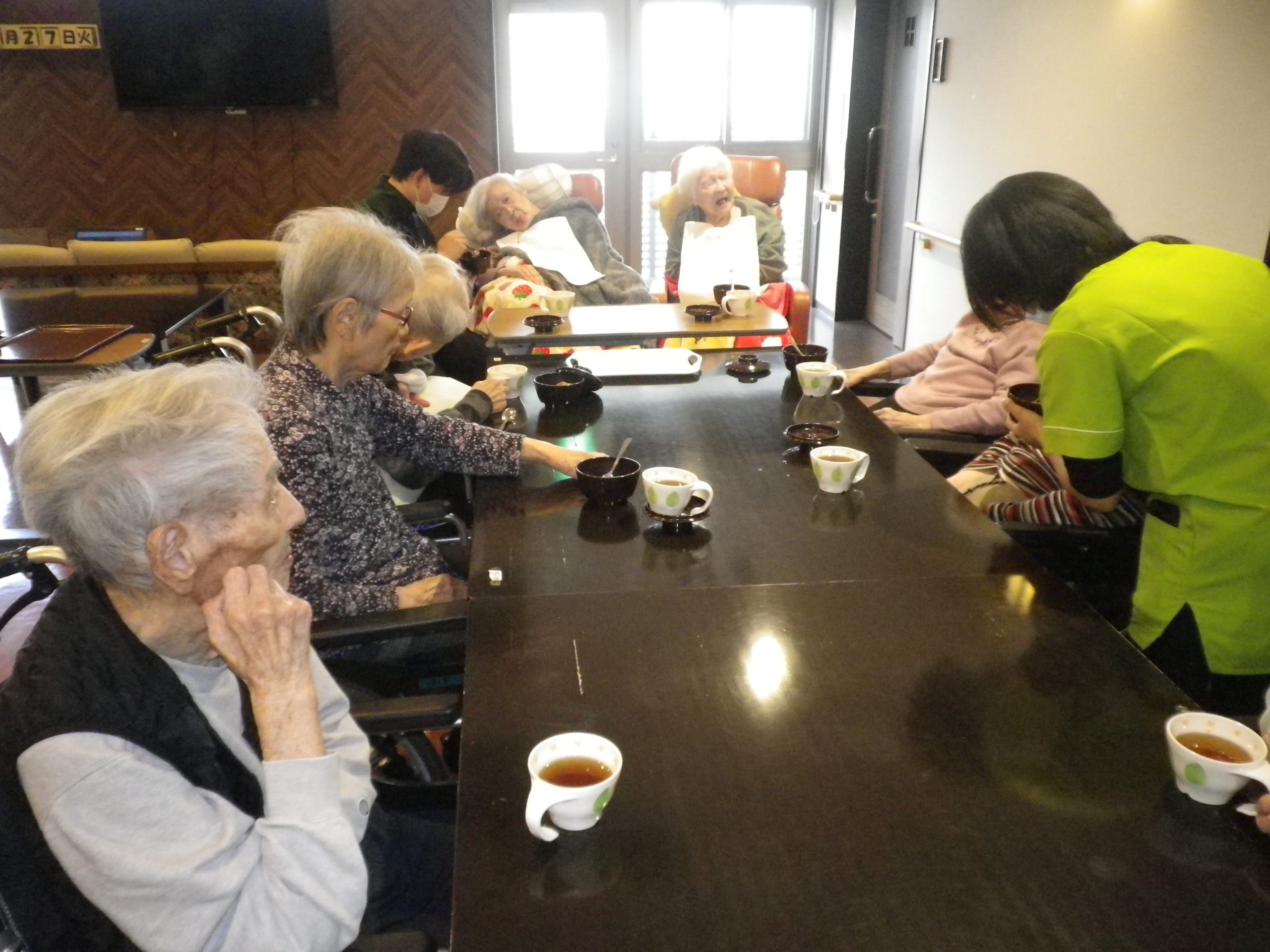 5階です!おやつ時に湯豆腐を食べました。薬味をそれぞれ選び、皆様美味しそうに食べておられました😋