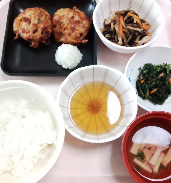 苦手な方でも食べ易い献立、かき揚げとして提供しました。