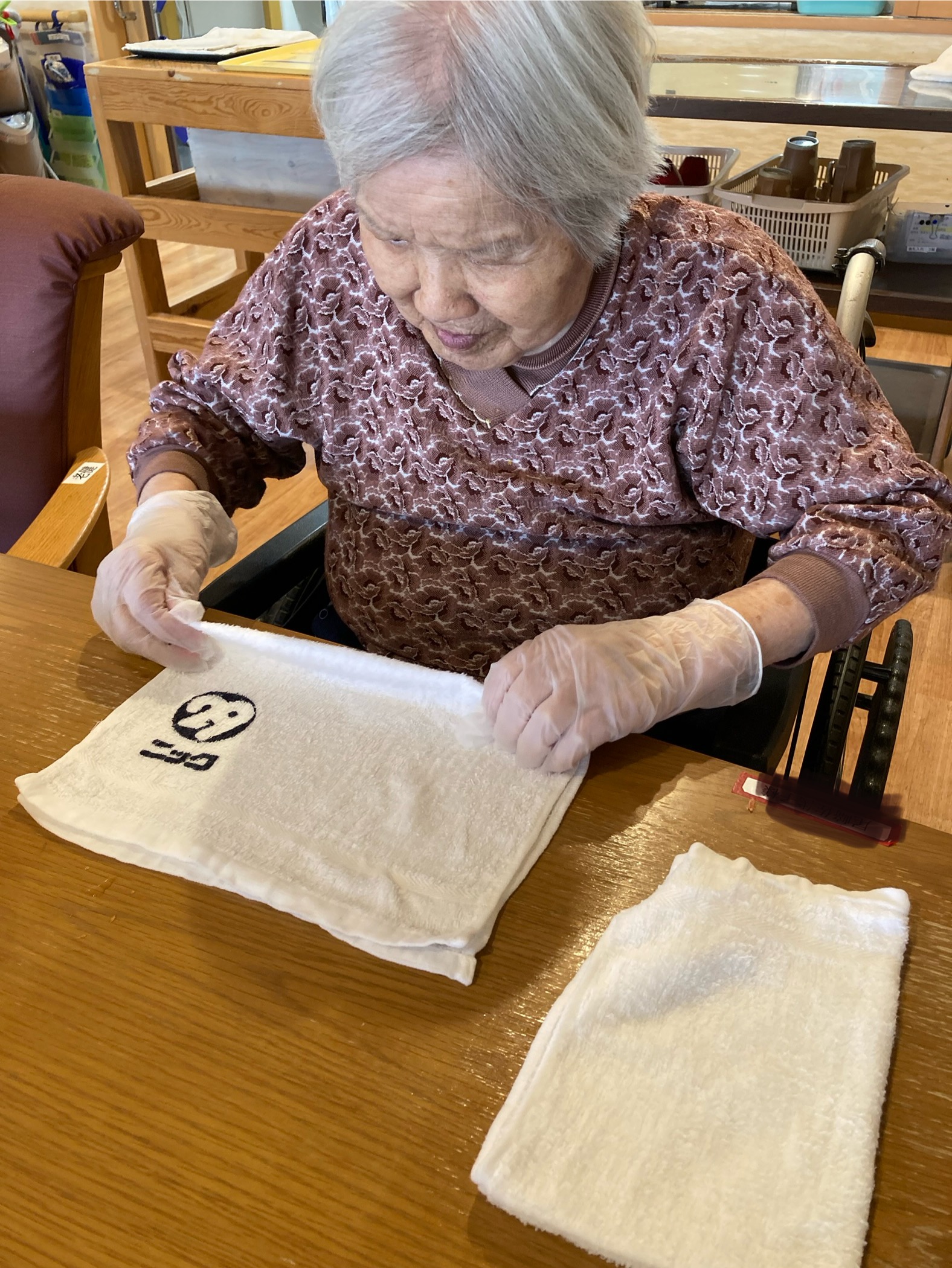 高齢者施設で利用者様が「おしぼりをたたむ」作業は非常によくある光景ですが、これは単なる作業ではなく、暮らしを支える大切な役割です。