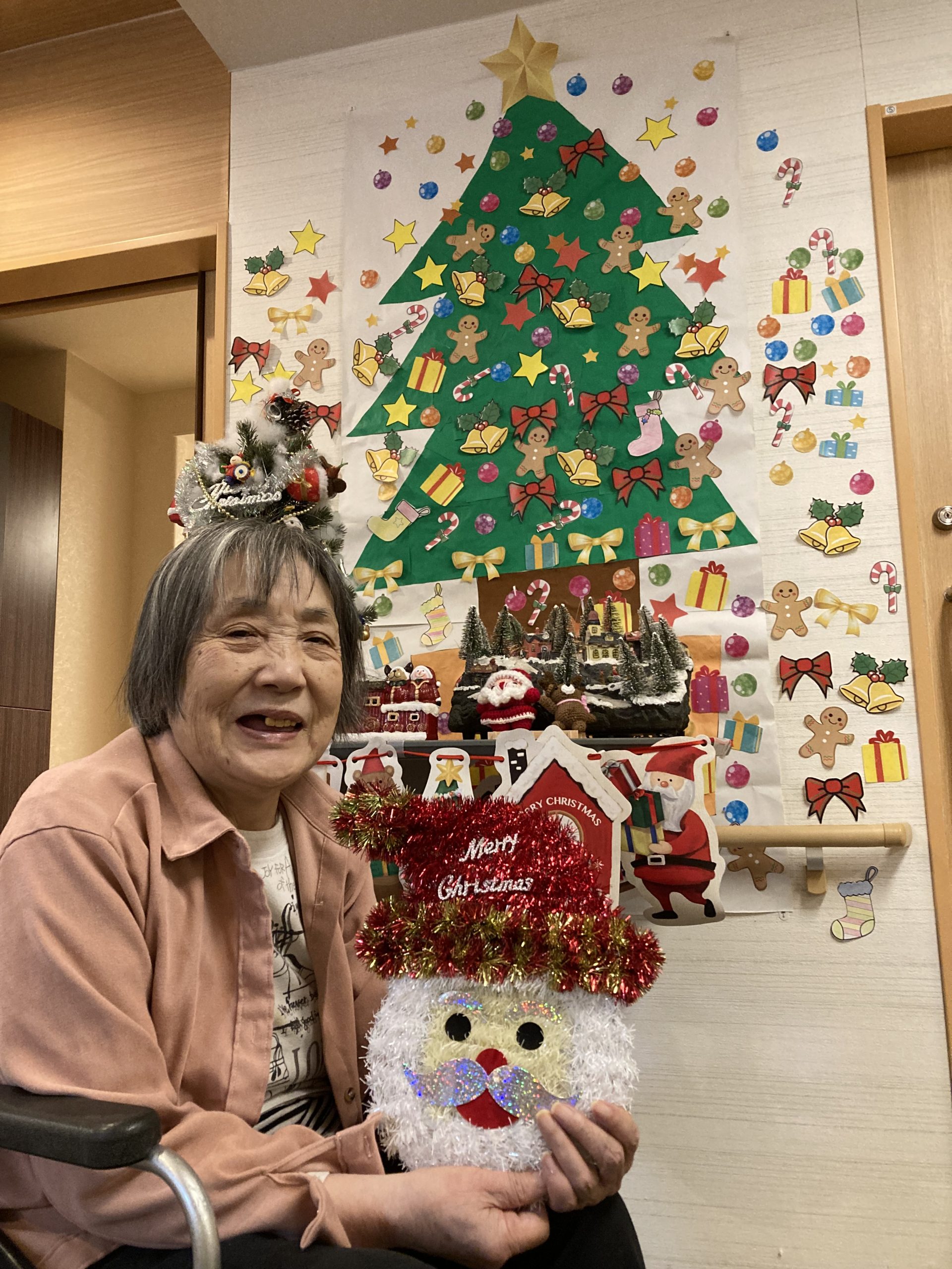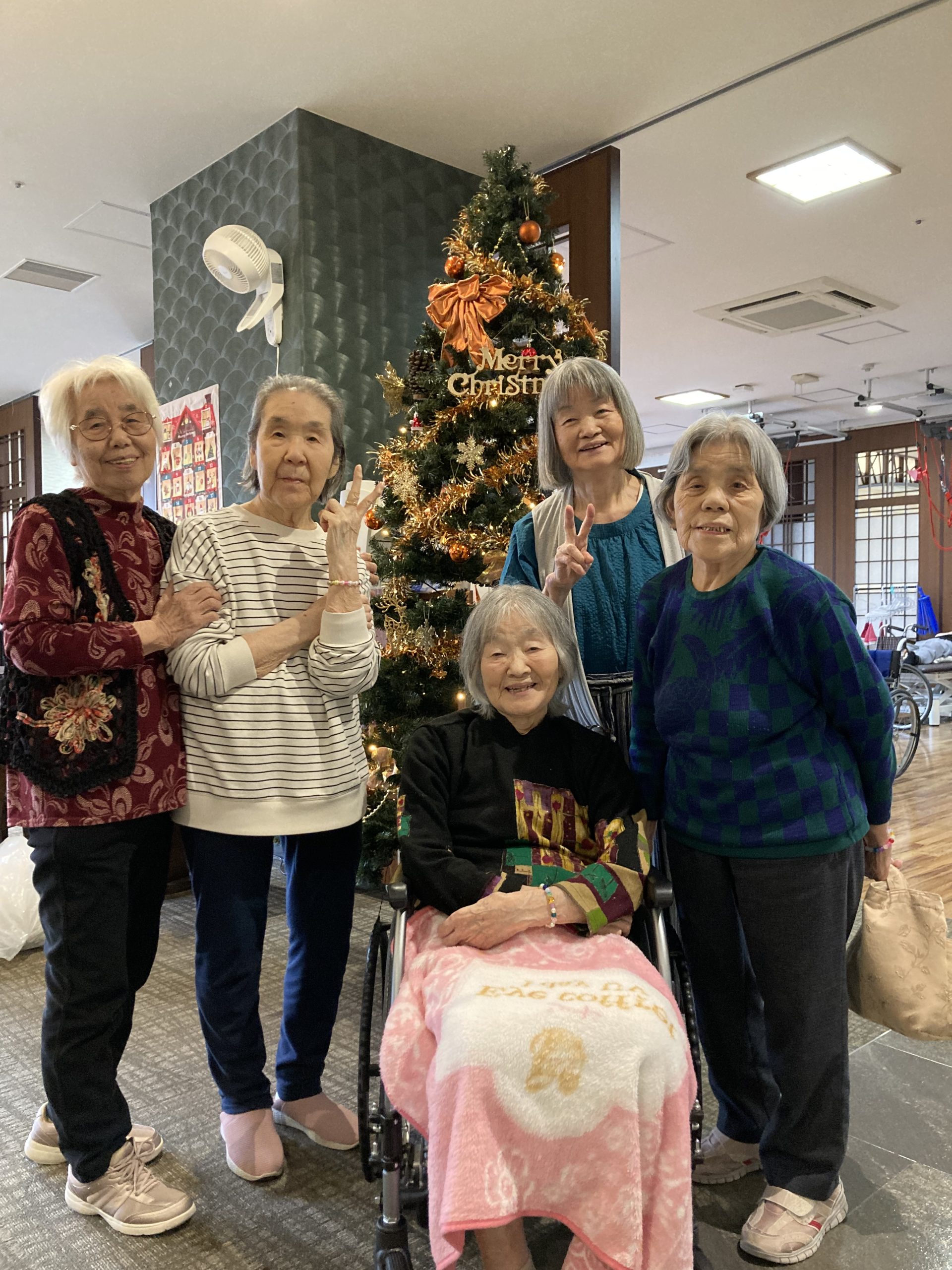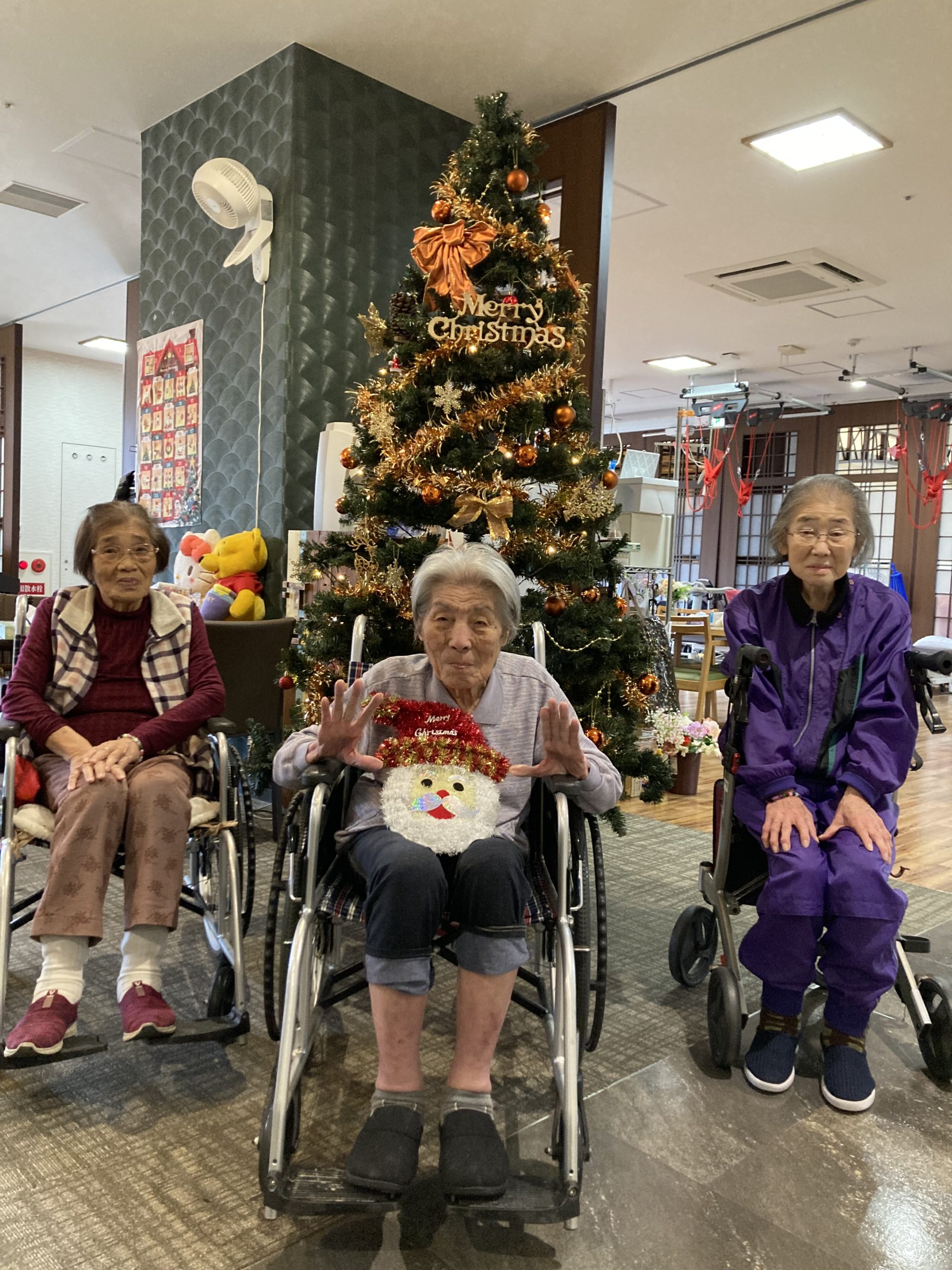 利用者の皆さんは飾りつけ🎄💡を背景に、記念撮影を楽しまれていました。