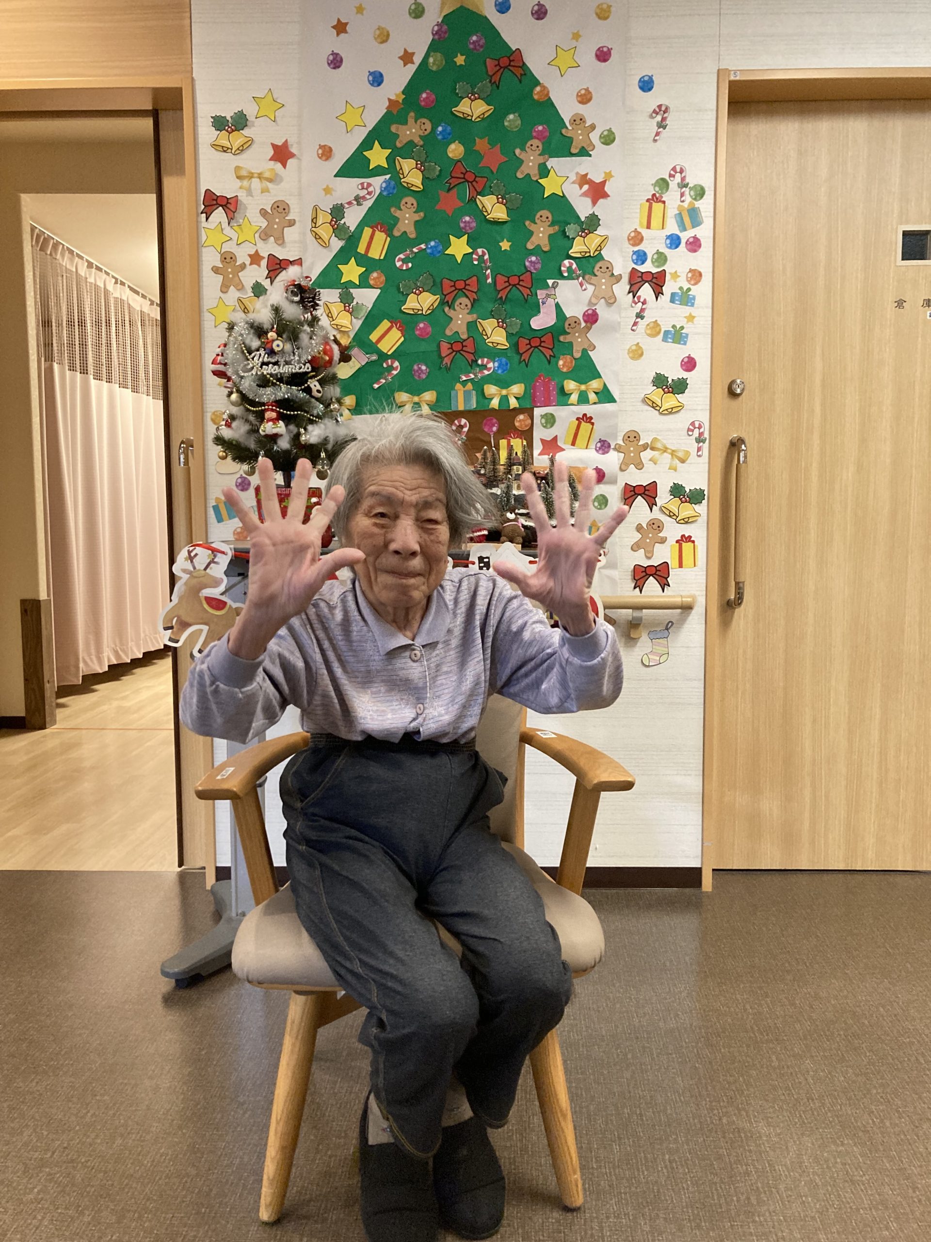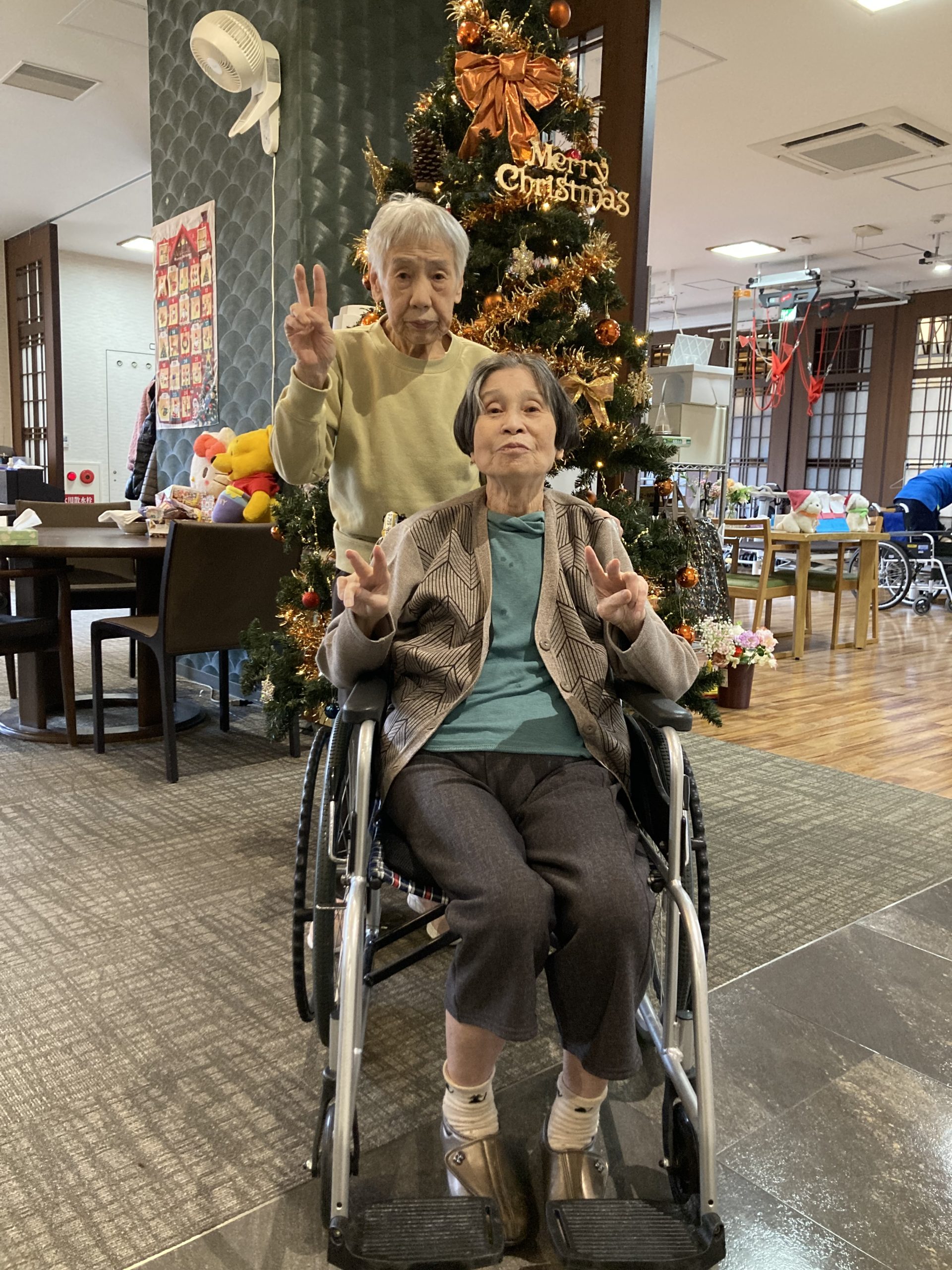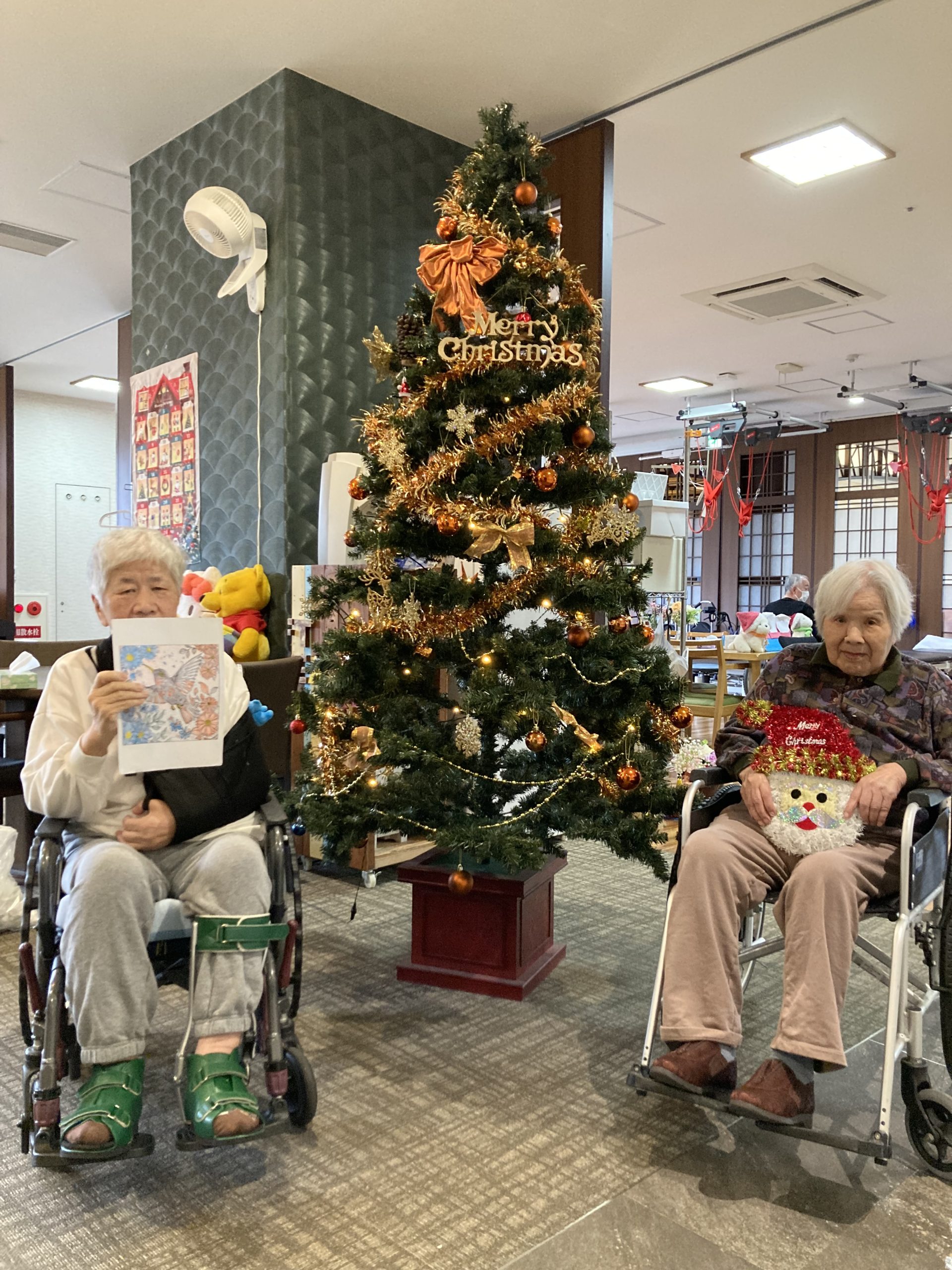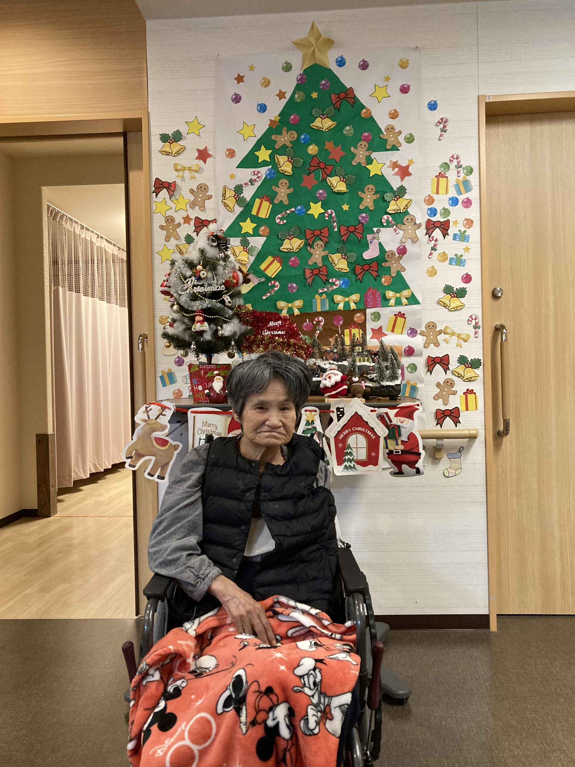 利用者の皆さんは飾りつけ🎄💡を背景に、記念撮影を楽しまれていました。