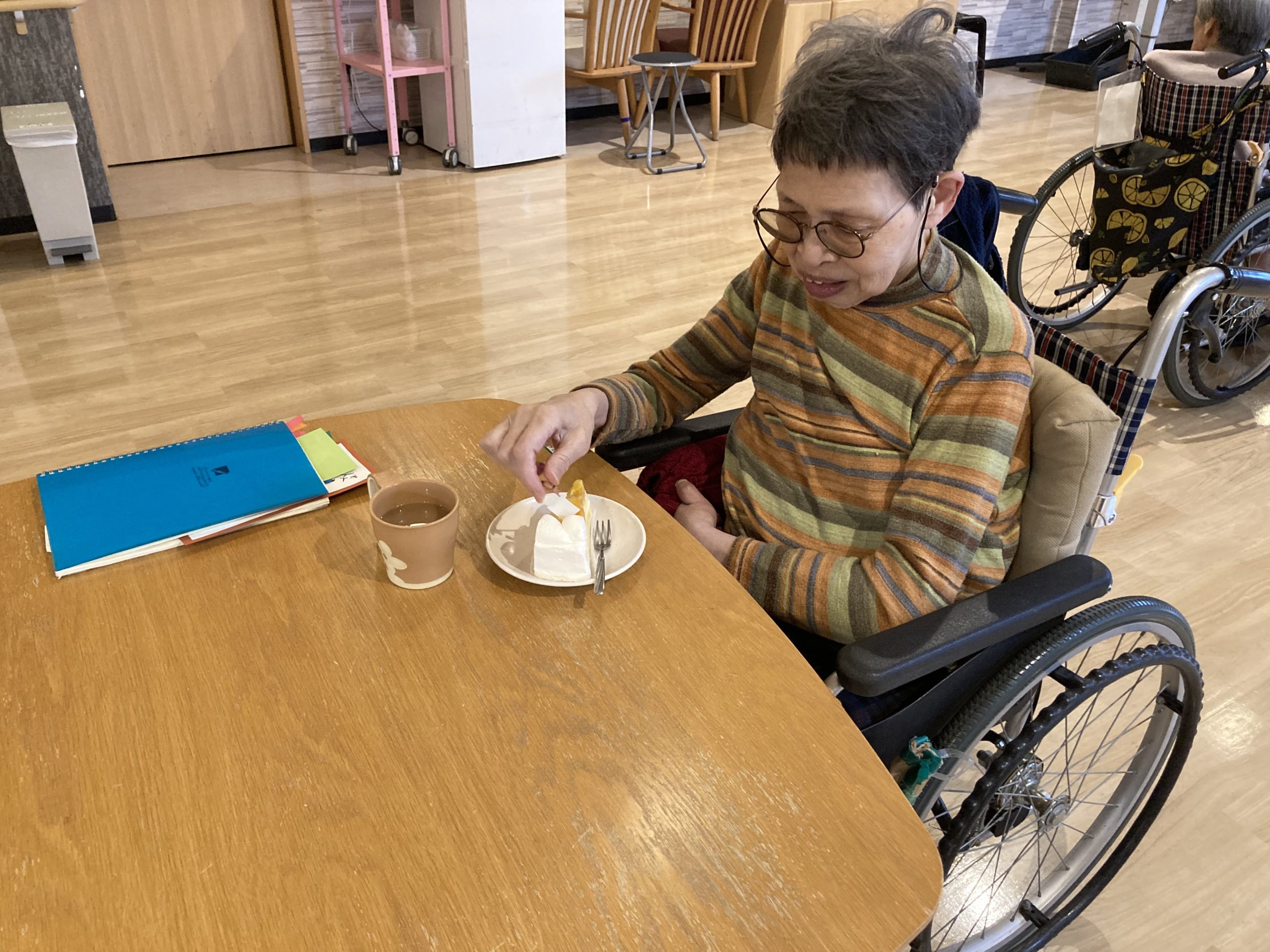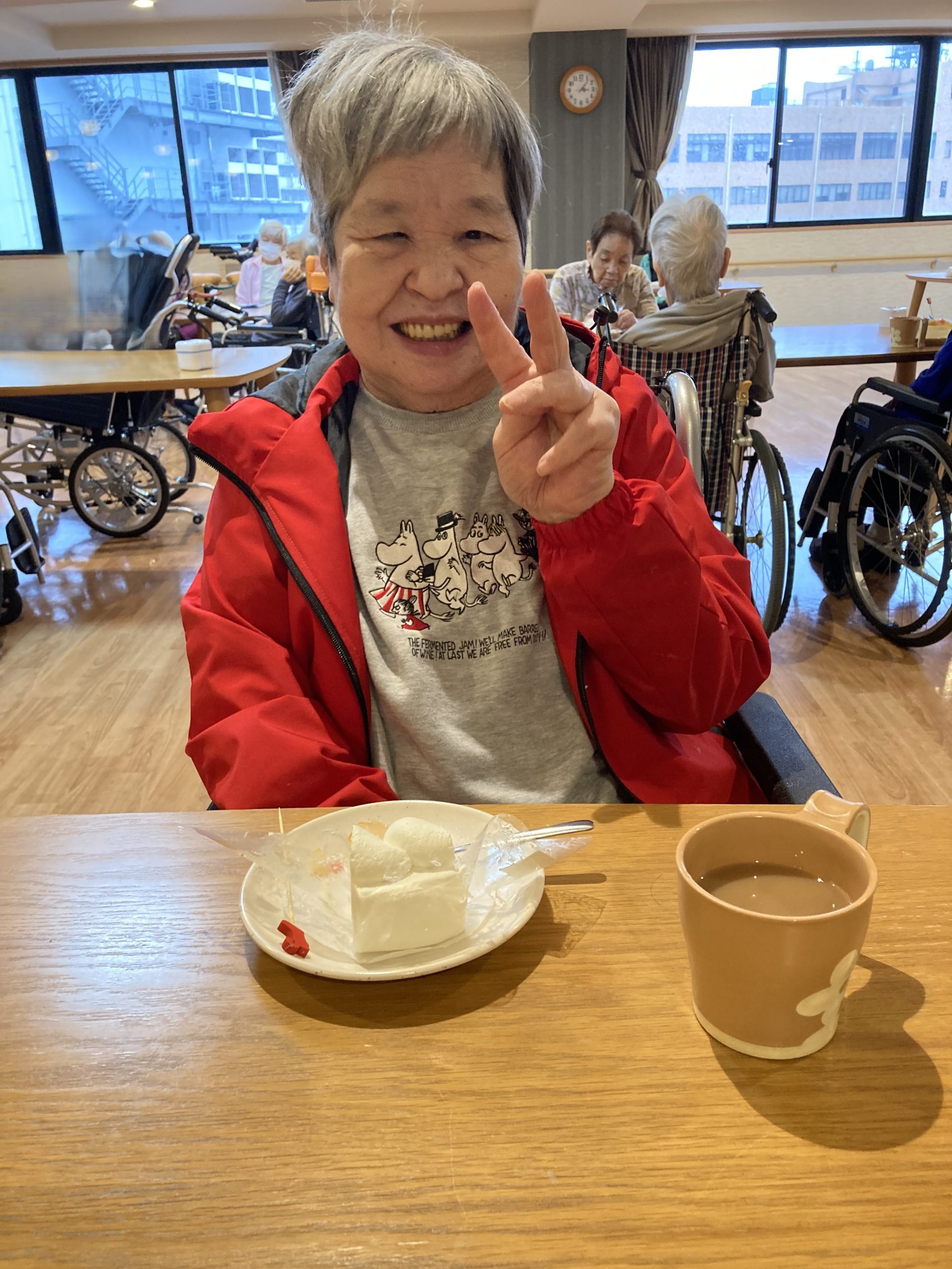 また、ケーキ🍰を召し上がれない利用者様には、カップ入りのゼリーを提供。見た目も可愛らしく安心して楽しまれていました。