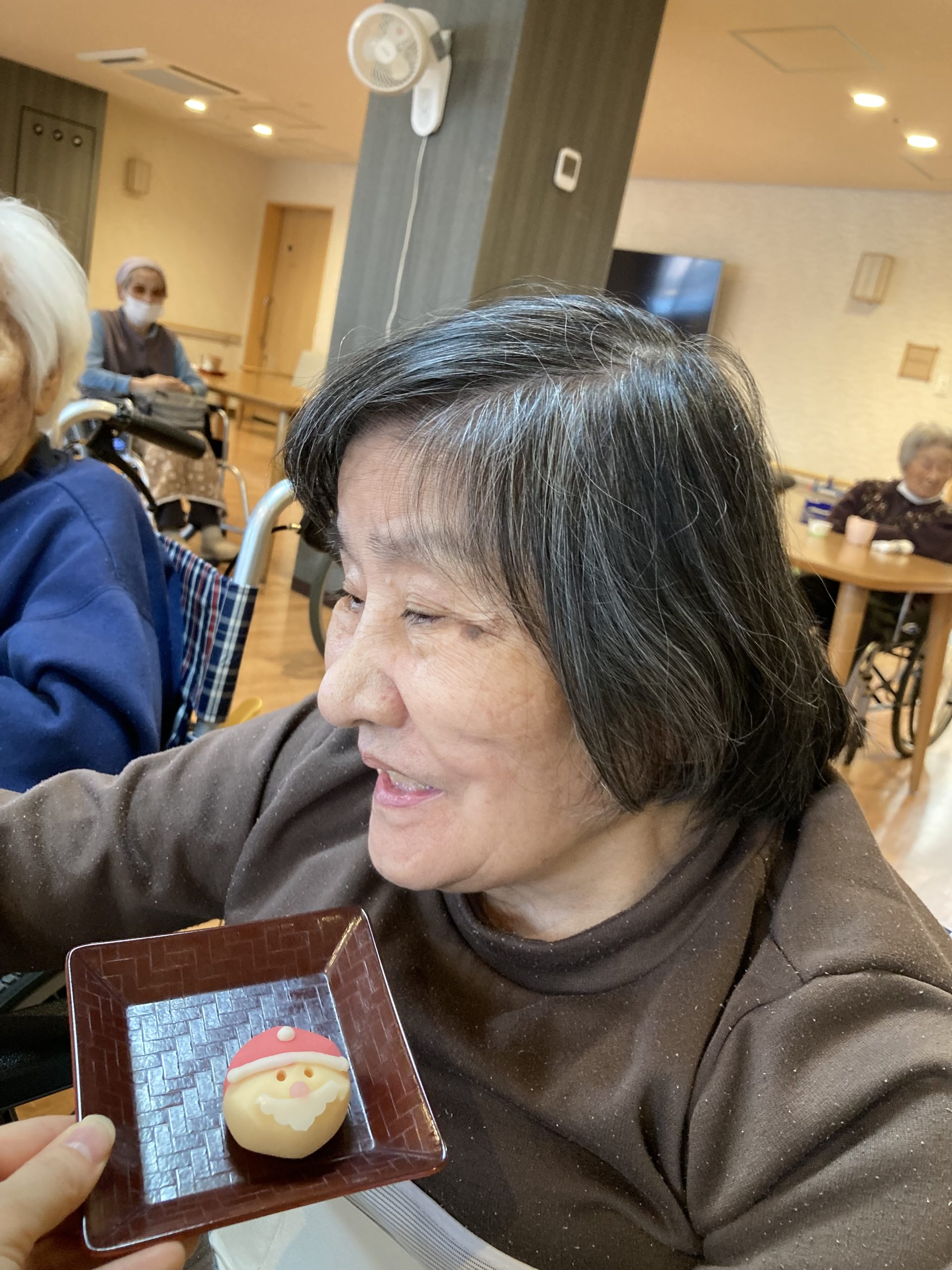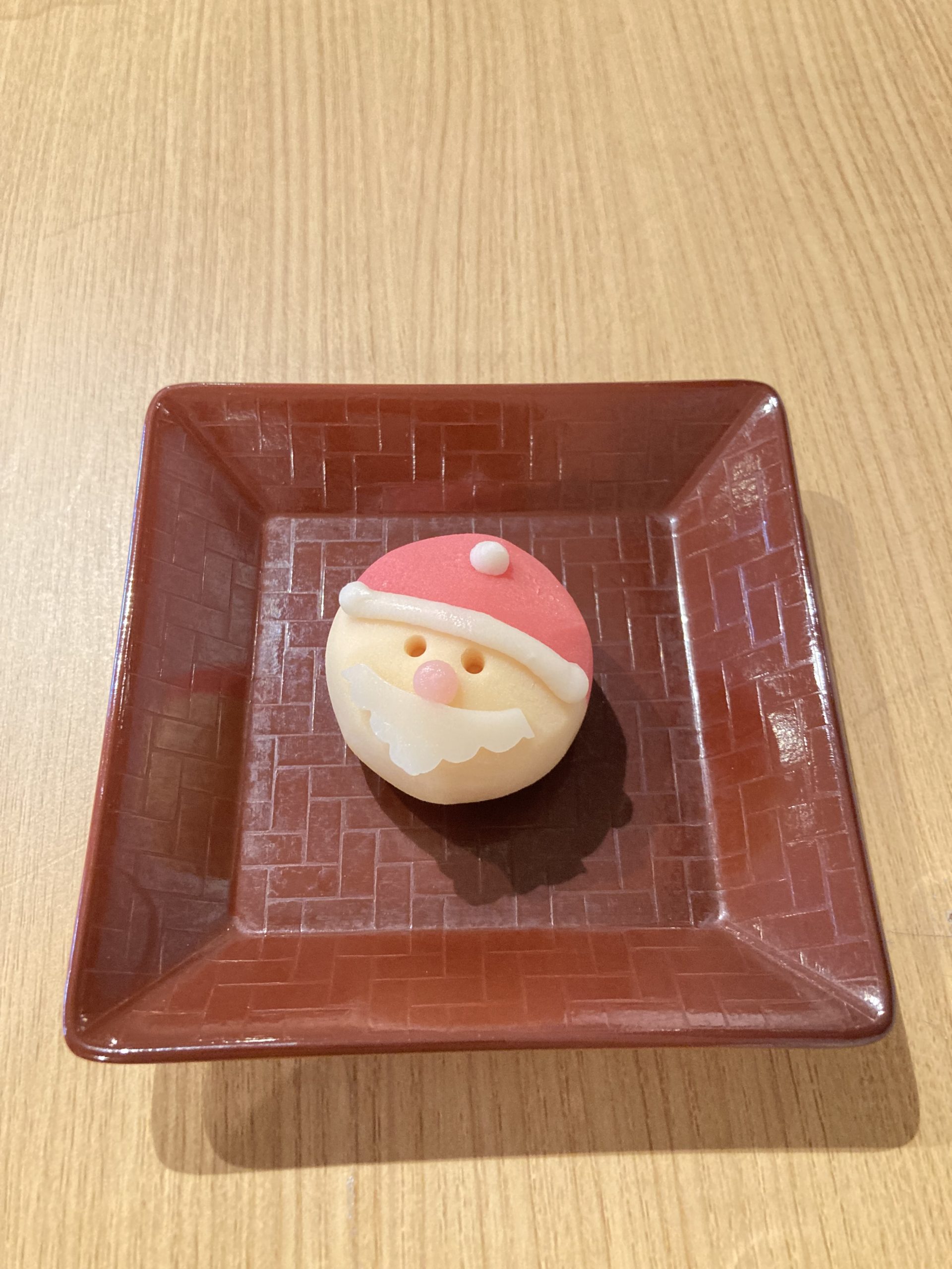クリスマスイブには、サンタクロースの顔🎅をかたどった可愛らしい和菓子を提供。